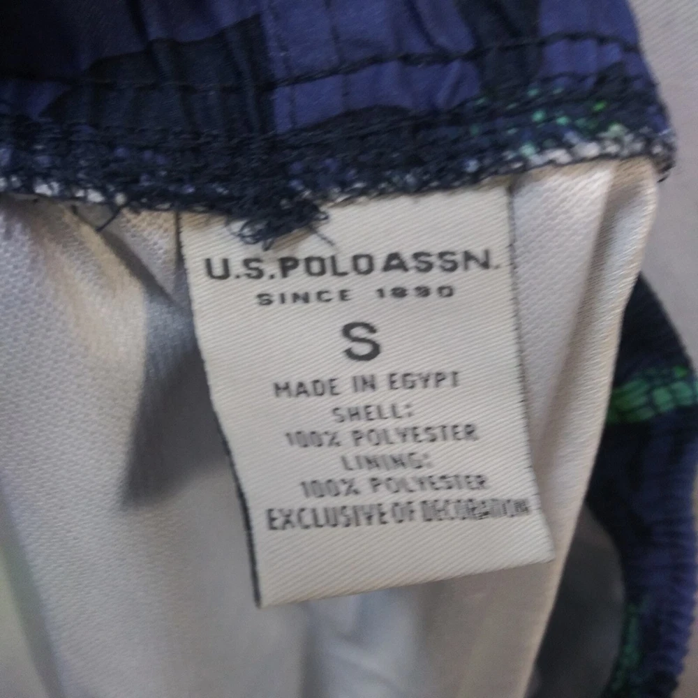 U.S. Polo Assn. Turtle Camo Swim Shorts Classic Navy Size Small Drawstring closure Machine Wash Enjoy beach days in style wearing the U.S. POLO ASSN. Turtle Camo Swim Shorts. Regular fit. Elasticized waist with drawstring. Side hand pockets. Allover camo and turtle print. New with tags approximate measurements waist across 15" rise 12" inseam 8"