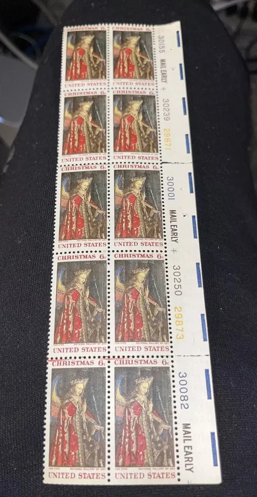 US Scott # 1363, "The Annunciation", by Jan Van Eyck, Plate Block of (10) 1968 6¢ Stamps, MNH Page numbers 30155 30239/29871 30001 30250/29873 30082