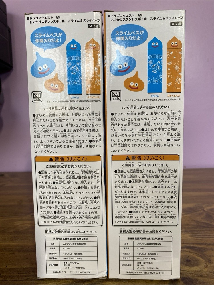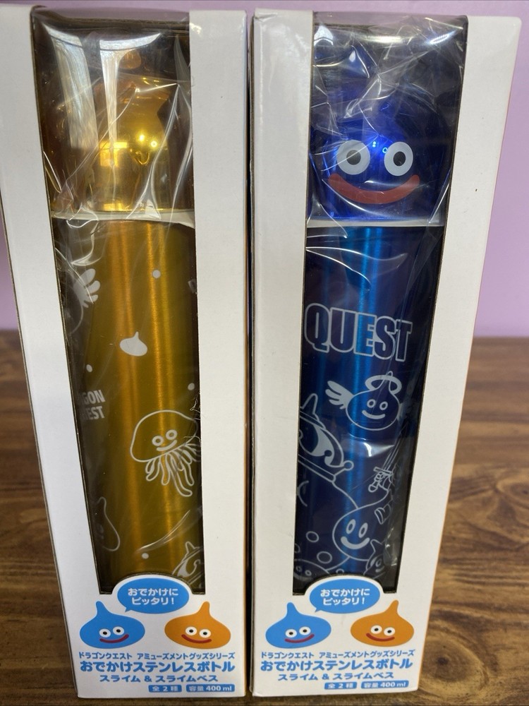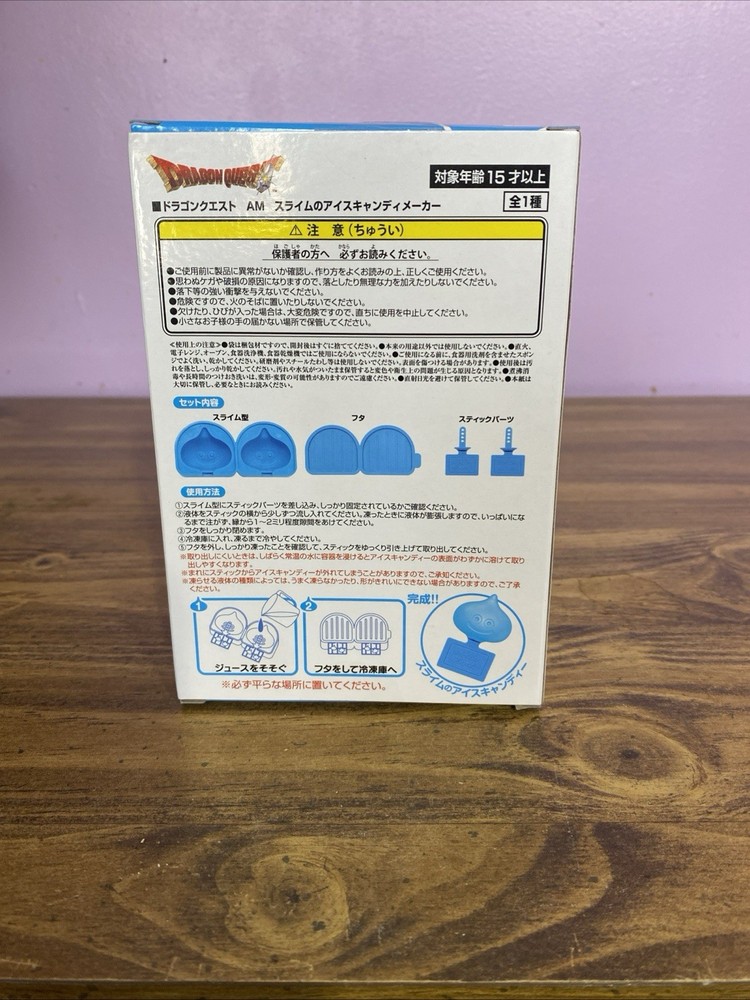 Lot of new unopened Dragon Quest AM slime themed goods. Includes: 2x Stainless Steel bottles 1x Metal Slime mouse 1x Desk Lamp 1x Slime popsicles maker 1x Drake Slime figure All items are sealed and may have slight cosmetic issues like creased corners from shipping, but are otherwise in very good condition as pictured.