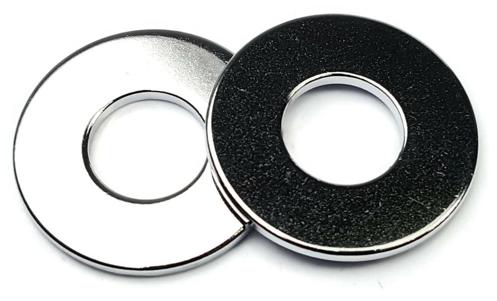 Add Albany County Fasteners to your Favorites and receive our email newsletters about new items and special promotions! General Interest USS Round Flat Washers - Chrome Plated Steel - #10 - 1/2" PRODUCT SPECIFICATIONS Material: Steel Item Condition: New Brand: Albany County Fasteners Manufacture: American Made Fastener Type: Flat Washer Standard: USS Sizing Finish: Chrome Plating Other: Select Size from Listing See table below for more specifications USS Inch sizes Round Flat Washers in Chrome Plated Steel USS Flat Washers in Steel with a Silver Chrome Plating Prevent pull-through. Used to distribute fastener pressure evenly Can be used where rust has made a hole larger Chrome flat washers in USS are measured in Inch sizes USS sized washers feature larger outside diameters Chrome plated steel offers superior corrosion resistance Chrome plating is perfect for a decorative, finished look with its mirror-like shine Actual measurements may vary slightly +/- depending on production run MADE IN THE USA Flat Washer Sizes Inner Diameter (ID) Outer Diameter (OD) Washer Thickness #10 0.250" 0.562" 0.049" 1/4" 0.312" 0.734" 0.065" 5/16" 0.375" 0.875" 0.075" 3/8" 0.438" 1.000" 0.083" 7/16" 0.500" 1.250" 0.083" 1/2" 0.562" 1.375" 0.109" A uss sized chrome flat washer is a round outer diameter thin plate with a center hole (inner diameter) punched to the size of the bolt or screw size. Payments We accept payments through eBay checkout, PayPal, Skrill/MoneyBookers or ProPay. You can make payment with your credit or debit card through eBay checkout. Preferred Method: PayPal Shipping Free standard shipping to all 50 States. All packages shipped with invoice of the order. ALL Orders containing 4 or more unique items will be upgraded to ship via Priority Mail for FREE. Handling Time: 1 day handling Monday through Friday after cleared payment for all in stock products. We only ship Monday through Friday excluding all holidays. International Shipping: We ship under the eBay Global Shipping Plan and your items are combined into one order through eBay checkout. All items are combined into one box not to exceed 12 items and 66 lbs and are shipped to an eBay USA central location, and then forward to your country. Under the Global shipping plan, eBay collects all shipping and customs fees up front and is handled by eBay. For all orders outside of the Global Shipping Plan, please contact us for a rate before purchasing. All customs delays, fees and duties are born and paid by the buyer. We cannot control customs thus AlbanyCountyFasteners-NY takes no responsibility for delay in the delivery of your package. In addition, should we miss calculate the shipping cost, AlbanCountyFasteners-NY will contact the buyer before shipping the products for all additional costs. Should the buyer not pay the additional requested costs, we will refund your total purchase and void your order. Product Packaging To “go green” and reduce our use of plastic all product quantities will be packaged in as few packages as possible. Returns Returns are accepted for 30 days for Domestic orders and 14 days for International orders from purchase date by contacting us for a RMA number. Buyer pays return shipping and insurance costs. Returned open packages will be subject to partial refunds. Please Note: Returns, cancellations or exchanges must be completed using eBay's formal return or Cancellation Process. Once an order has been placed, Returns, Cancellations or substitutions cannot be made through buyer/ direct messaging. Listing Photos Listing photo is generic for the fastener type listed in this listing and is not to scale. Please refer to the description for fastener details. If in doubt, please ask a question through chat or email. We will respond with the requested information quickly. Contact Us You may contact customer service M-F 8AM to 5PM Standard Eastern Time All rights reserved copyright photos, listing, headings and descriptions.