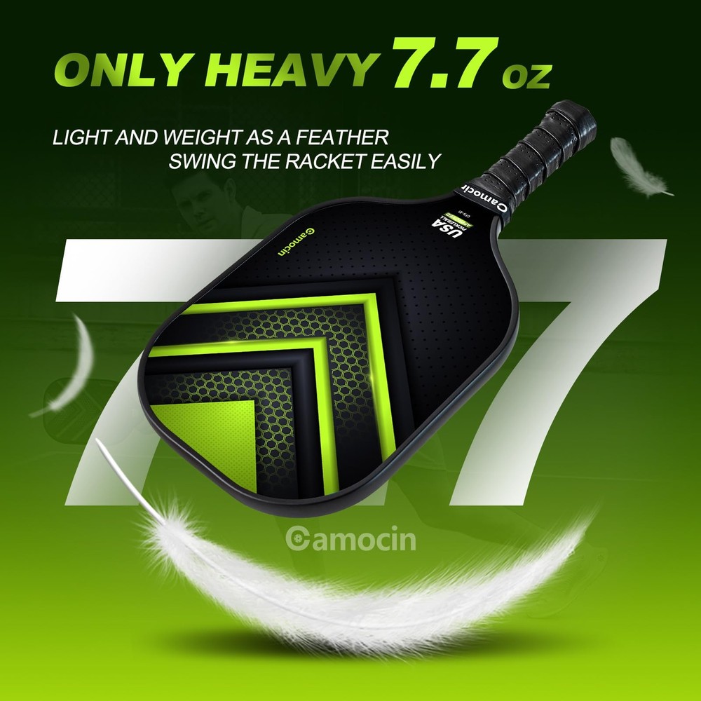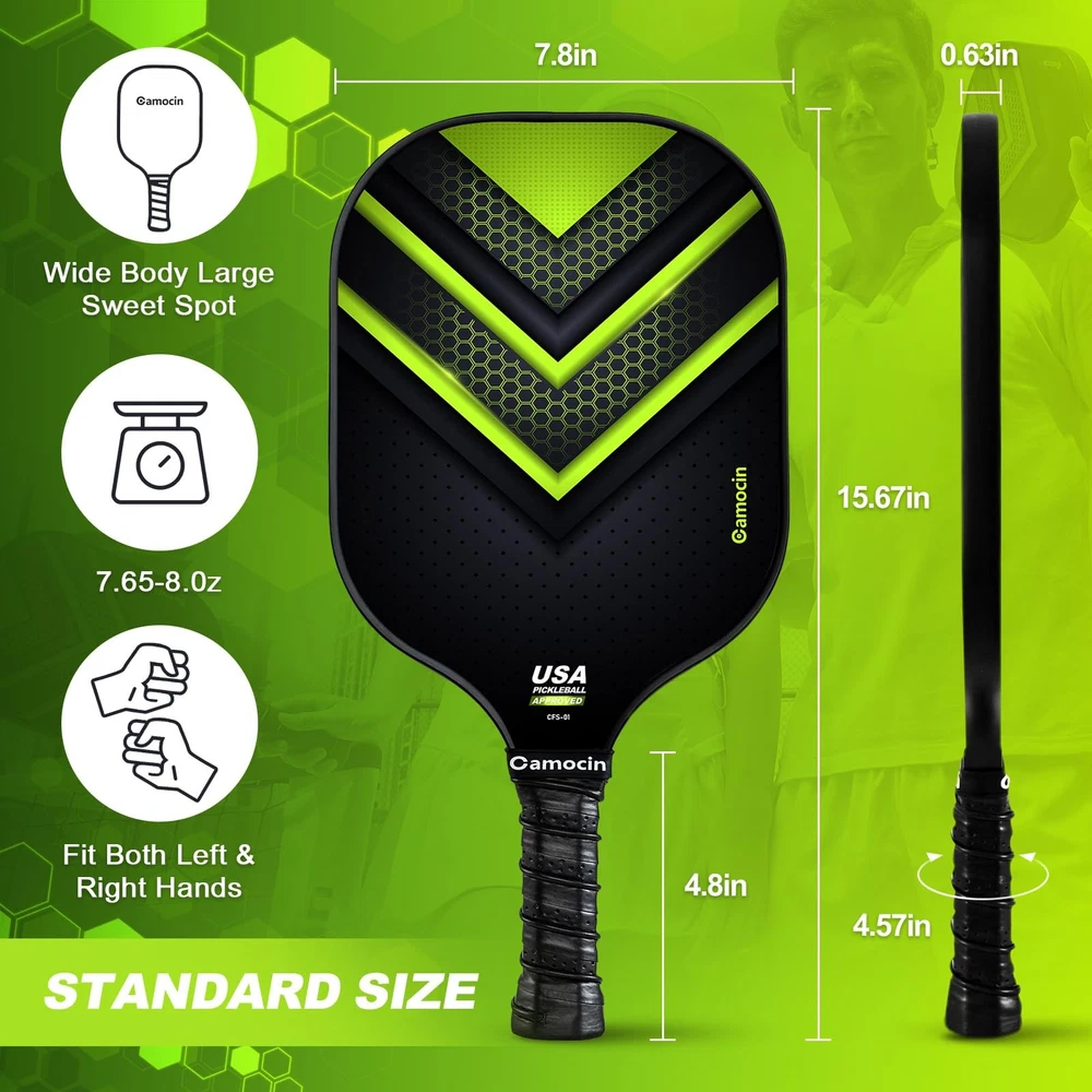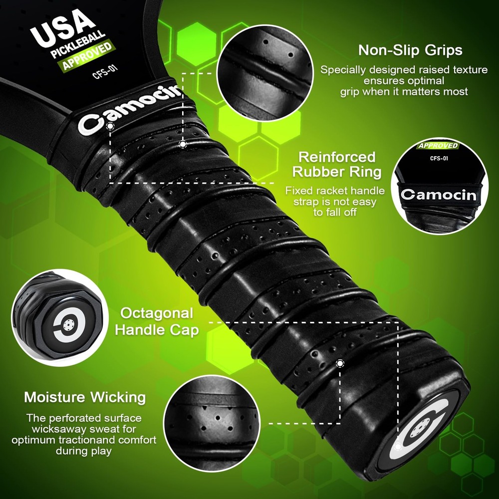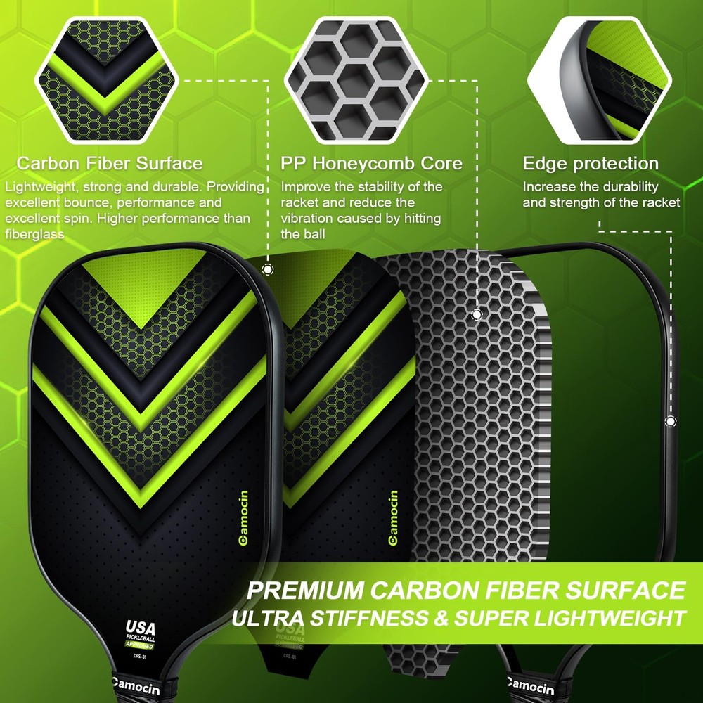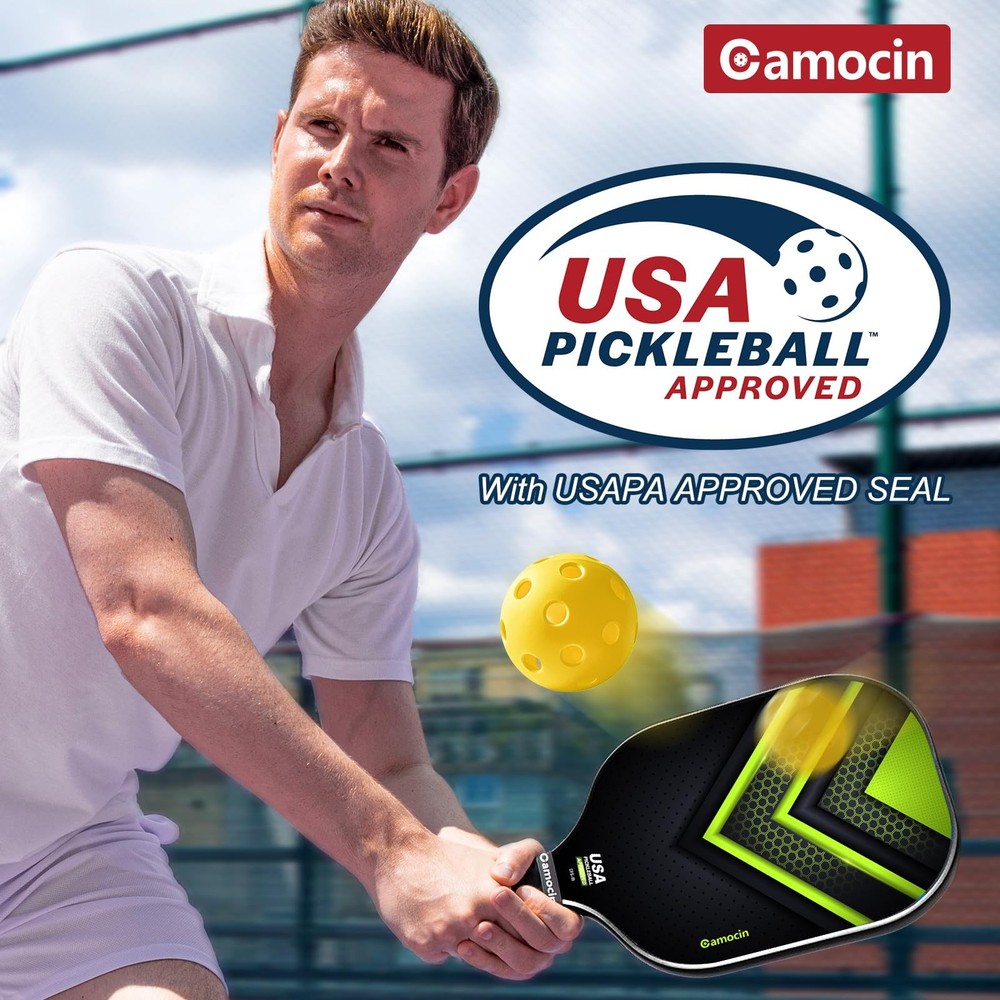 pickleball paddles pickleball paddles set of 2 pickleball paddles carbon fiber pickleball paddle pickle ball rackets 2 pack pickleball racket pickle ball paddle pickleball paddles set of 2 carbon fiber pickle ball paddles pickleball paddles set pickleball rackets carbon fiber pickleball paddles set of 2 pickleball rackets pickleball paddles graphite graphite pickleball paddles set of 2 graphite pickleball paddles pickle ball racket professor pickleball paddles carbon fiber pickleball paddles pickleball paddle set pro pickleball paddles pickle ball rackets pro pickleball paddles pickleball paddles pickleball paddles professional pickleball paddles set of 2 graphite pickleball racquet cool pickleball paddles professional pickleball paddles pickleball+paddles intermediate pickleball paddles pickleball paddle set of 2 carbon fiber pickleball paddle graphite pickleball paddle carbon pickleball paddle pickleball paddle carbon fiber pro pickleball paddle paddle pickleball professional pickleball paddle pickleball paddles set of 2 usapa approved legacy pickleball paddle raw carbon fiber pickleball paddle womens pickleball paddle legacy pro pickleball paddlepickleball carbon fiber paddle pickleball paddle graphite pickleball paddles usapa approved lightweight pickleball paddle 16mm pickleball paddle carbon fiber pickle ball paddles 2 pack pickleball paddle pro pickleball training paddle pickleball rackets 2 pack pickleball rackets 2 pack usapa pickleball paddles pickleball racquets pickleball paddles usapa approved pickleball paddles pickle ball paddle set of 2 carbon fiber pickleball racket pickleball paddle beginner pickleball paddles kinetic pickleball paddle 【USAPA Approved Pickleball Paddles】USA Pickleball ( formally known as USAPA) is the National Governing Body for pickleball in the U.S. Camocin carbon fiber pickleball paddles set of 2 have been officially approved by USA Pickleball in September, 2023 for any tournaments play. You can find the approval information by searching the model name CFS-01 on the USA Pickleball website. 【Premium Cabon Fiber Pickleball Paddle】Made of a pair of unique and premium carbon fiber surface and polypropylene honeycomb core, Camocin pickleball paddles set of 2 provide exceptional power and nice control, reduces ball deflection, which improves performance. 【Ergonomic Designed Grip And Durable Edge Guard】Camocin Pickleball paddles is designed with cushioned, perforated and sweat absorbent material, it absorbs sweat, prevents slipping, and resists wear, and can help users better grasp the grip and provide cushioning. The ideal grip circumference of 4.57" and length of 4.8″ offer great hold. The durable edge guard provides a covering to the interior, avoiding the risk of delaminating. 【Larger & Lighter & Thicker Pickle ball Rackets 2 Pack】The larger pickleball paddle surface (L: 10.87″ W: 7.8″) provides larger sweet spots for the perfect shot. Despite being thickened to 0.63 inches, each pickleball paddle only weighs 7.65-8.0 oz, providing excellent bounce, improving pitching performance, and striking the perfect balance between power, control, and feel. 【Perfect Pickleball Paddles Set For All Skill Levels】Whether you're a beginner, intermediate level, or professional player, the Camocin Pickleball Set is the perfect fit for you. You will receive sturdy carbon fiber pickleball paddles set of 2, 2 outdoor and 2 indoor pickleball balls, 1 carrying pickleball bag, and 2 grip tapes. Camocin pickleball set comes in a beautiful box, making it the perfect gift for friends and family!