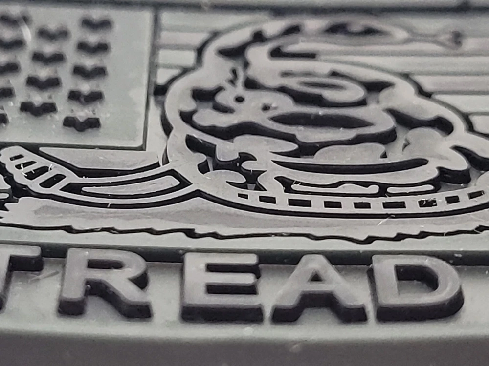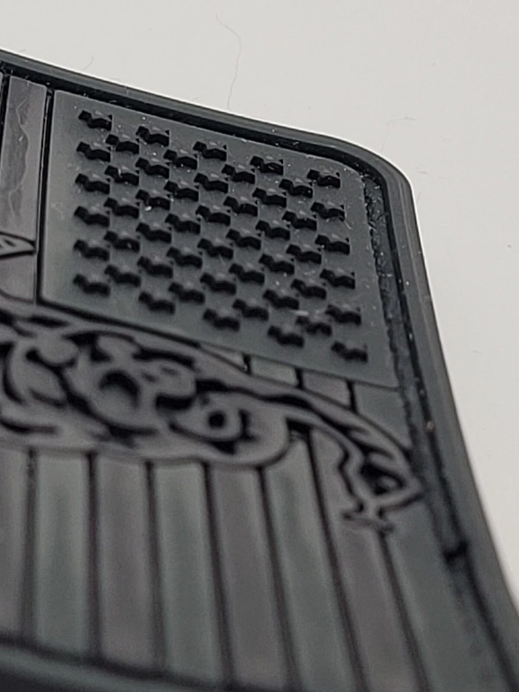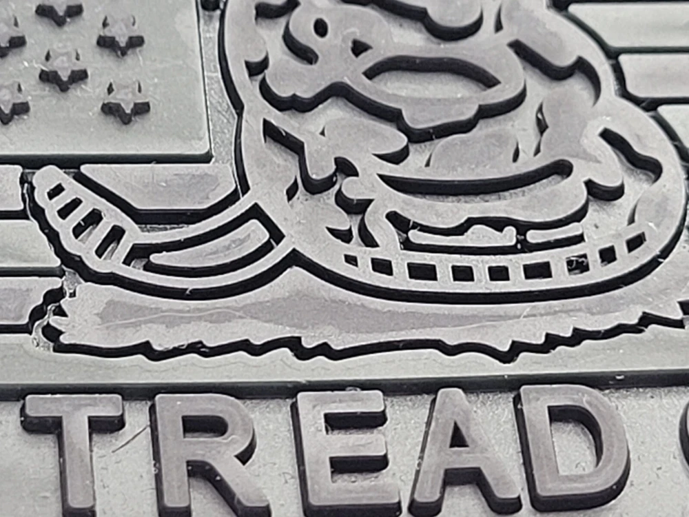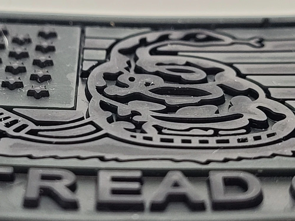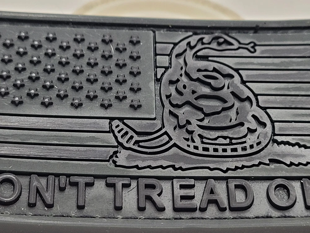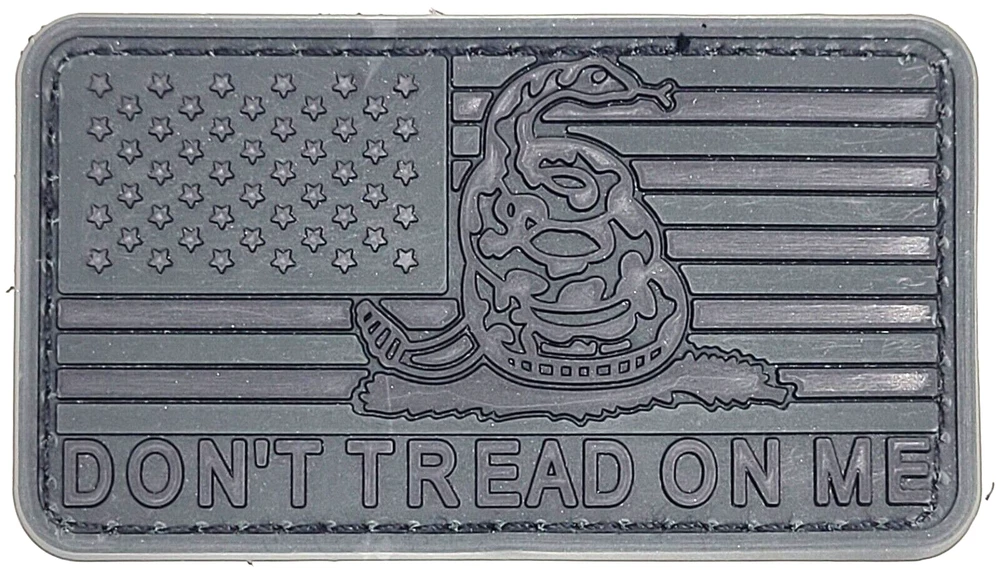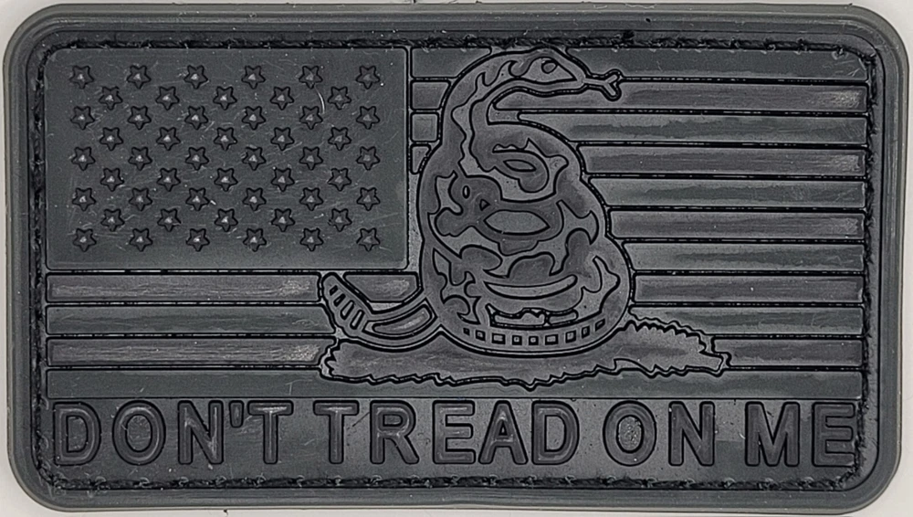American Flag in Dark Ops SWAT Black, all black stars and stripes with Snake image in the center and the words "Don't Tread On Me" Running along the bottom. Rubber PVC 2.0 Solid, heavy, dramatic 3D effects