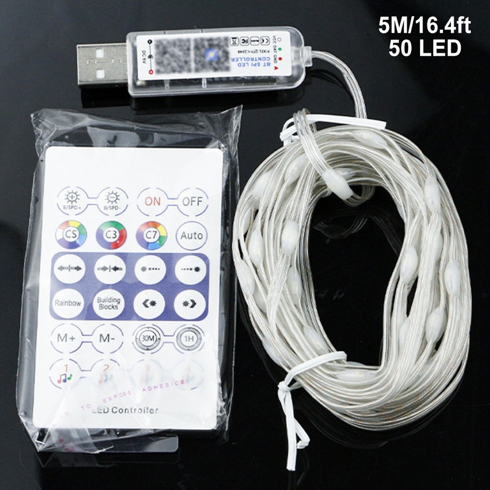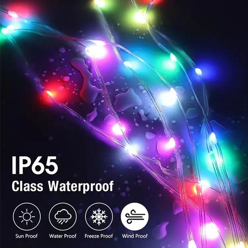 Product Description Features: Magical color changing lighting: 19 vibrant colors and 4 dynamic music modes create a dreamy atmosphere. The flexible silver wire allows you to freely create lighting designs, perfect for bedrooms, terraces, Christmas trees, and any indoor or outdoor decoration. Remote control, convenient and easy: adjust brightness, switch colors or set timers - all operations can be completed on a comfortable sofa! 16 colors and 4 lighting modes (flash, strobe, gradient, soft) for you to choose from. In addition, the memory function can save your last settings for easy use. Dual power flexible switching (USB/battery): It can seamlessly switch between USB or 3 AA batteries (excluding) according to needs. Using energy-saving LED, the battery life is extended by 50%, and it is 1.5 times brighter than standard lights. This 16 foot tall smart fairy light emits a warm glow and is plug and play, bringing infinite magic to gardens, terraces, or living spaces. Triple protection upgrade: Adopting a three wire design, stable power transmission can be achieved, and the oversized LED module can achieve instant color conversion. The high-density rubber casing provides IP65 weather resistance, offering lightweight durability and all-weather safety for indoor/outdoor use. IP65 Waterproof Starlight Lights: These battery powered light strings can be used indoors and outdoors without worrying about moisture or weather damage. Fairy lights are suitable for any place, including water, ice cubes, vases, snowmen, swimming pools, handicrafts, and more. Attention: Only the light string is waterproof, the battery pack is not waterproof. Easy to operate: The multifunctional remote control remotely controls multiple lighting modes, allowing users to design lighting scenes according to their own ideas. The USB interface is suitable for various devices such as charging heads, power banks, computers, etc. It is easy to carry and equipped with a "battery compartment", eliminating the embarrassing situation of running out of battery halfway through use. Attention: The bundled light wire will generate heat when it lights up. Please rest assured that this is normal and safe. However, we suggest that you unfold the light string for better results. Product Description: Material: ABS Length: 5 meters Power: 5W Luminous flux: 280 (LM) Input voltage: ≤ 36 (V) Lifespan: 50000 (H) Lamp beads: 50 pieces Package List: 1x light string 1x remote control 1x battery compartment (excluding battery)