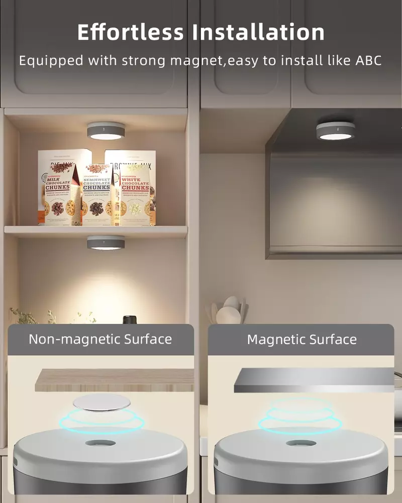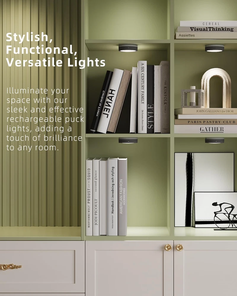USB Rechargeable Puck Lights With Remote 1600Mah Battery Powered Push Lights New USB Rechargeable Puck Lights with Remote, 1600mAh Battery Powered Push Lights Stick on Magnetic Tap Light for Closet Wireless LED Kitchen Under Cabinet Light Shelf Press Button Light Wall Touch Light Product Description: The USB Rechargeable Puck Lights with Remote offer versatile and convenient lighting solutions for any space. These wireless LED lights are powered by a 1600mAh rechargeable battery, providing long-lasting illumination without the need for permanent wiring. Featuring a magnetic design, they can easily be attached to metal surfaces, making them perfect for closets, under cabinets, shelves, or any area in need of additional light. With a press button and remote control, these puck lights provide easy operation and brightness adjustment for all your lighting needs. Features: USB Rechargeable Battery: Equipped with a 1600mAh rechargeable battery, these lights can be charged via USB, eliminating the need for constant battery replacement. Wireless & Easy Installation: These puck lights are battery-powered and can be installed without any complicated wiring, offering quick setup with magnetic or adhesive backing. Remote Control Operation: Enjoy easy control with the included remote, allowing you to turn lights on/off, adjust brightness, and set lighting modes from a distance. Magnetic Design: The built-in magnets make these lights easy to attach to metal surfaces, perfect for placement in closets, cabinets, or shelves. Touch & Press Button Control: Besides the remote, the lights feature a touch-sensitive button for simple manual operation, providing flexible control options. Bright LED Illumination: These puck lights offer bright, energy-efficient LED light, perfect for highlighting areas like kitchens, hallways, and workspaces. Long-Lasting Performance: With the rechargeable battery and energy-efficient LEDs, these lights provide hours of use on a single charge, making them ideal for everyday use. Compact & Portable: The small, lightweight design makes them easy to move and install wherever extra lighting is needed, adding versatility to your home or office. Light Source Type LED Number of Items 4 Number of Light Sources 10 Lamp Type LED Lamp Assembled Height 1.22 inches Efficiency 66.67 lumens/watt Product Dimensions 3.34 x 3.34 x 1.22 inches Assembled Width 3.34 inches Bulb Features Dimmable Indoor/Outdoor Usage Indoor Brightness 100 Lumen Shipping Fast shipping is very important for us. Our standard USA shipping service is FREE. Your order will be shipped within 1-2 business days upon full payment received. Your order will be delivered within 1-3 business days after the handling time. We only ship to the confirmed address. We reserve the right to cancel any order for any reason at any time. We are not responsible for undeliverable addresses. Returns and payment We offer a 30 days return policy from checkout winning date. FeedBack Your feedback very important to us, after you get your package and you are satisfied with our service please leave us positive feedback If you have any problem with your order / any questions please before leave any type of feedback For any questions, using eBay contact system Please visit our eBay store to check out other items for sale! Thank you for shopping at our store.