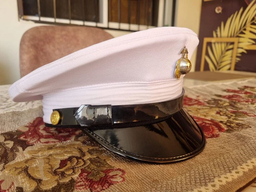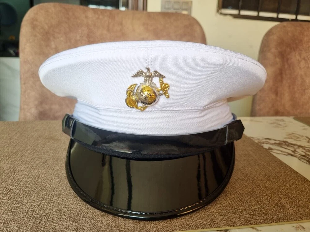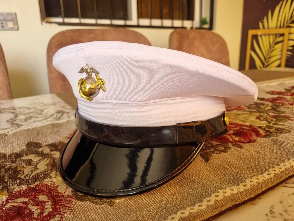 Elevate your wardrobe with the USMC Marine Corps Dress Blue Enlisted Cotton Service White Dress Cap. Tailored for a size 7 1/4 headsize, this authentic piece marries tradition with contemporary craftsmanship. The hat boasts the distinguished Marine brand, synonymous with quality and heritage. Designed and manufactured in the United States, this original item reflects the spirit of modern militaria. The cap is a stellar choice for collectors and those who honor the military's proud legacy. Its classic styling ensures it pairs effortlessly with any ensemble, making it a versatile addition to your collection.