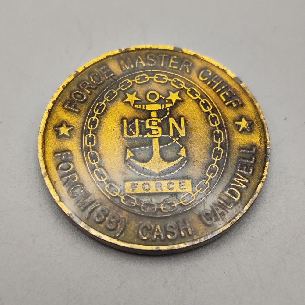 TITLE-- USN Forcm Cash Caldwell Force Master Chief Challenge Coin SIZE-- Measures approx. 1.75 inches Used coins have imperfections, please see pictures SHIPPING -- Ships within 5 days of receiving payment. Your purchase will be carefully packaged and you can always check tracking information on eBay SERVICES -- If you have any questions, you can contact us at any time, we will reply you as soon as possible to solve your problem If you are not satisfied with your purchase for any reason, please contact us before leaving neutral or negative feedback, we will solve the problem for you properly