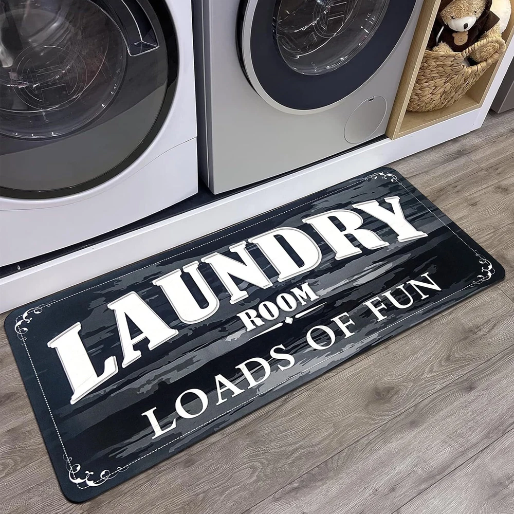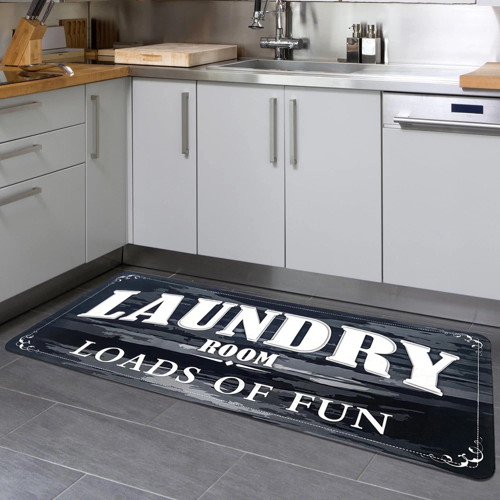USTIDE Laundry Room Runner Rug Non Slip Waterproof Floor Mats for Laundry Room Decor Washable Farmhouse Rubber Rug for Kitchen Bathroom Mudroom Washroom 20x48 Inch, Black Runner Size: 20"x48"(51x122cm), about 5mm thickness No Slipping Backing: Natural Non slip rubber backing, not easy to fade, keeps super durable, and heavy weight makes the runner rugs stay in place Patent Protected Design: Printed flocking surface, colorfast, waterprof, easy maintainance, water sweep or vaccum clean Soft & Cushy: Made of foamy natural rubber and printed flocking surface, this durable floor mats can comfort your legs and feet to avoid fatigue caused by stand a long time when you wash clothes or prepare dinners.You will love this cute design Wide Applications & Functions: Perfect solution for wash room floor mat, laundry room rug runner, kitchen Rug, Pantry sign,entrance doormats, bathroom rug, farmhouse basement decor, beautiful, vintage and functional; Worth buying! Add to your Cart now! Shipping We offer FREE shipping on all orders! We use a selection of shipping services such as UPS, FedEx, USPS etc. We only ship to the lower 48 states, no APO/FPO addresses or PO Boxes allowed. Local pickups and combined shipping options are not provided at this time. Return You can return a product for up to 30 days from the date you purchased it. Any product you return must be in the same condition you received it and in the original packaging. Please keep the receipt. Payment We accept payment by any of the following methods: PayPal Please pay as soon as possible after winning an auction, as that will allow us to post your item to you sooner! Feedback Customer satisfaction is very important to us. If you have any problem with your order, please contact us and we will do our best to make you satisfied. Contact Us If you have any queries, please contact us via ebay. We usually respond within 24 hours on weekdays. Please visit our eBay store to check out other items for sale! Thank you for shopping at our store.