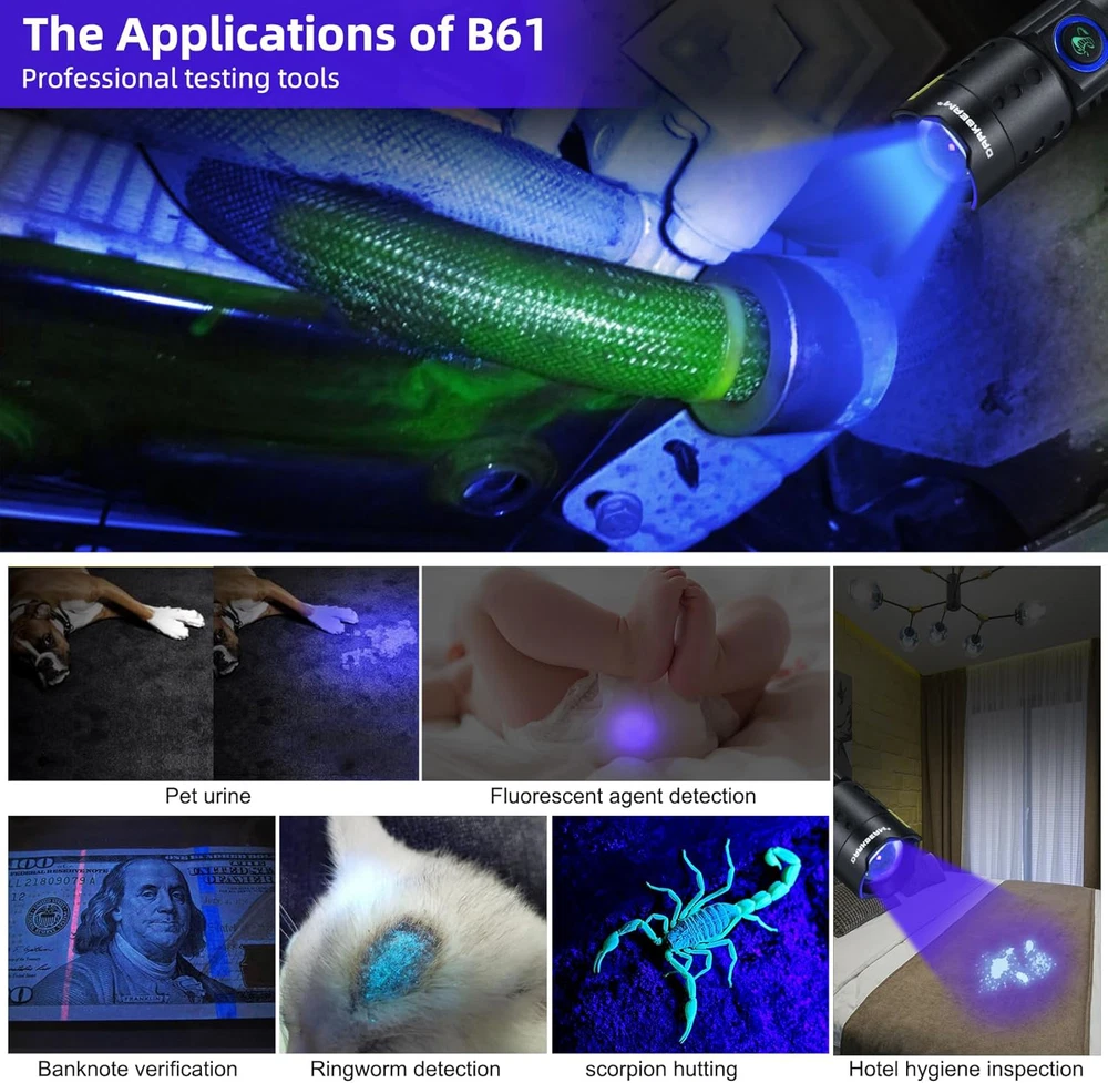 Fast Shipping Great Customer Support Satisfaction Guaranteed DESCRIPTION Shipping Shipping Shipping All domestic packages are shipped for Free (Unless other shipping method was selected during the checkout) We ship within two business days of payment, usually sooner Standard FREE shipping takes between 3-5 business days Expedited shipping takes between 2-3 business days Overnight shipping takes between 1-2 business days We do not accept P.O. BOXES - PLEASE PROVIDE A PHYSICAL ADDRESS We Ship Globally using ebay's GSP, the item is sent to a logistic center in KY and shipped from there to the rest of the world. International customers are responsible for all duties and taxes Contact your local authority for questions related to the amount of duties or taxes you will be responsible for Return Return Return In the event that you would like to return your purchase, we allow returns that are processed within the defined return date (the return date is to be found in the return policy/shipping and handling section) Please contact us for a return authorization and the return shipping address. Please contact us for a Return Merchandise Authorization (RMA) number. We advise you to use a reputable carrier service when returning your goods. Please pack all returns appropriately. We ship globally Via eBay's global shipping program (GSP). Thus we don't cover returns for items shipped globally. Buyers returning such items will be refunded ONLY for the item's cost and not for the shipping. please check the Voltage information and make sure it matches the one in your country. In case it's not stated in the description, do ask us. Payment Payment Payment PayPal is our preferred method of payments it's the quickest, easiest and most secure way to pay for your goods or services online. PayPal offers buyer and seller protection should there be a problem. If you do not have a PayPal account, to get started and buy your first item with us is very easy. Simply click on the 'Buy It Now' button and follow the eBay checkout steps. Select PayPal as the payment method you then will be given the chance to enter your card details in to PayPal's secure checkout in order to pay for your order. Once the payment has been made, you will then be given the opportunity to make your own PayPal account to make paying for your items in the future very easy. Should there be a problem with payment please do let us know. Feedback Feedback Feedback Customer satisfaction is very important to us. If you have any problem with your order,please contact us and we will do our best to make you satisfied, please do not leave a negative feedback before we resolve your problem. We guarantee that your issue will be solved quickly. As long as you are happy with your purchase of , please leave us a positive feedback. Your feedback is very important to us it affects our search placement on eBay. We will leave a positive feedback for you in return automatically once we receive your feedback. Contact Us Contact Us Contact Us If you have any queries, please contact us via ebay. We usually respond within 24 hours on weekdays. Thank you for visiting our ebay store! 〖Upgraded Powerful UV 365nm Light Flashlight〗The LED UV 365nm light with 10W power output is invisible to the naked eye, so that it is not as BRIGHT as the 395nm flashlight, but more good for detection of high demand like fluorescent agents & security code. And also has USB-C direct charging function, which is good for environmental protection. The portable handheld pet dried urine detector will make your daily life easier! 〖Long Lasting and USB Rechargeable〗 Powered by rechargeable battery, with 3-6 hours battery life. You can use the included USB-C charging cable and take 4 hours to fully charge the UV light directly with any USB device such as adapter, power bank (supply voltage of not more than 5V 2A), reduce the trouble of frequent battery replacement. 〖Made For Your Easy Operation〗The power indicator on the side switch will turn red, prompting you to charge in time when the power is low. With detachable clip for easy one-handed operation, weighs 4.64OZ and measures 5.05*1.1 inches, small enough to fit in your keychain, pocket, backpack, toolbox. Saves you valuable time when checking your pet's ringworm or buying antiques (uranium glass, gemstones, amber, etc.) 『Adjustable Focus, IPX4 WaterProof Torch』Smooth focus design: Just push and pull the lens to stretch and adjust the focus. More convenient to find scorpion tracks at night, IPX4 waterproof torch with thicker rubber pads for better waterproof performance. IPX4 waterproof torch with thicker rubber pads for better waterproof performance, which can withstand harsh environments such as rain, snow or bad weather and still work properly. UV 365nm Rechargeable Flashlight Black Light for Pet Urine & AC Leak Detection Click here to see description Fast Shipping Great Customer Support Satisfaction Guaranteed DESCRIPTION Shipping All domestic packages are shipped for Free (Unless other shipping method was selected during the checkout) We ship within two business days of payment, usually sooner Standard FREE shipping takes between 3-5 business days Expedited shipping takes between 2-3 business days Overnight shipping takes between 1-2 business days We do not accept P.O. BOXES - PLEASE PROVIDE A PHYSICAL ADDRESS We Ship Globally using ebay's GSP, the item is sent to a logistic center in KY and shipped from there to the rest of the world. International customers are responsible for all duties and taxes Contact your local authority for questions related to the amount of duties or taxes you will be responsible for Return In the event that you would like to return your purchase, we allow returns that are processed within the defined return date (the return date is to be found in the return policy/shipping and handling section) Please contact us for a return authorization and the return shipping address. Please contact us for a Retu