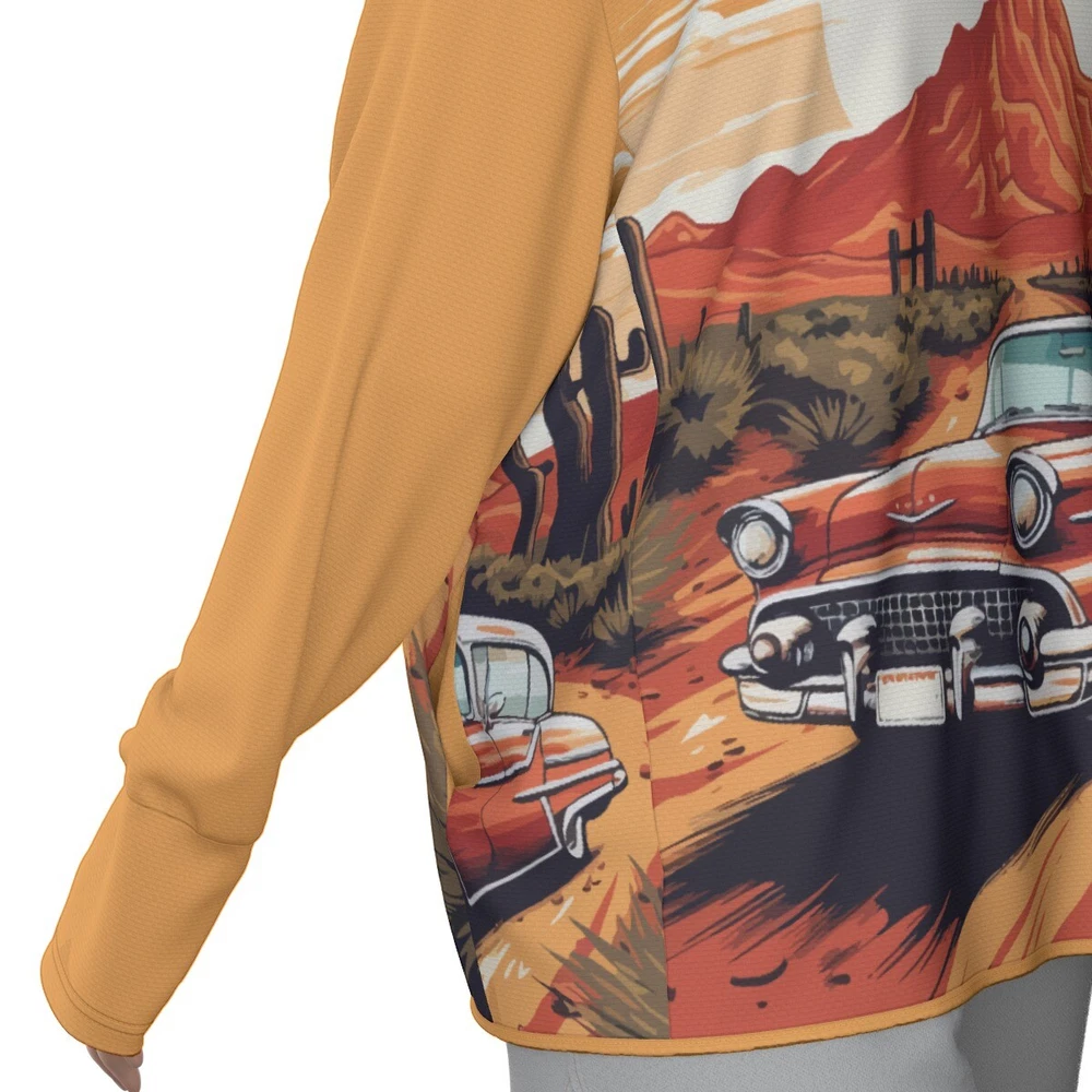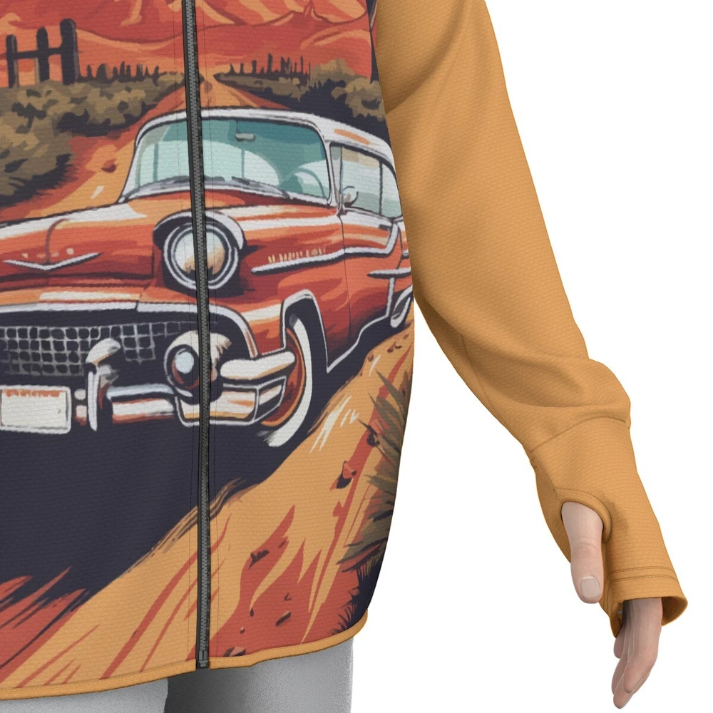 "Discover Premium Sunscreen Clothing with Advanced UV50+ Technology Experience ultimate sun protection in style with our UV 50+ Sunscreen Hoodie featuring a captivating scene of an orange sunset, vintage retro classic car on a country road, with mountains and the sun as a backdrop. Embrace the nostalgia and charm while shielding yourself from harmful rays. This hoodie also offers hand covers for warmth and a drawstring for a personalised fit. Customise it to your liking for a truly unique piece. Don't miss out on this fusion of fashion and function – order your custom hoodie today and carry the beauty of the sunset wherever you go! - Effective UV50+ protection clothing - Thumb holes for comfortable outdoor activities - Lightweight, breathable 94% Polyester, 6% Spandex fabric - Adjustable hat rope for personalized fit - Easy care machine wash and tumble dry - Made to order for environmentally sustainable fashion - Fabric Weight: 170 g/m² - Regular fit with drawstring PERSONALISATION OPTIONS please leave your text request in the notes section upon in the check out. MADE TO ORDER At Inzion Collections, we believe in empowering you to express your individual style. That's why we offer custom-made, personalised options for our sunscreen clothing. Add your unique touch. What's more, our commitment to sustainability means that your custom piece is crafted on demand, reducing excess production and minimising land waste. Elevate your outdoor experience with our top-ranked sunscreen clothing designed for optimal UV 50+ Sunscreen protection, and do your part in embracing environmental responsibility." RETURNS: All garments are made to order so we do not carry stock on hand. For this reason we cannot offer size exchanges so please use the provided size chart for accurate sizing. We do offer a FREE REFUNDS AND REPRINTS on any manufacturing faults, print flaws, wrong addresses or lost items in the mail, wrong size sent, due to our or our print facilities fault. In any of these cases please contact us and we will be happy to reprint or resend for free. PLEASE NOTE" : All items are fully tracked to arrive safe and secure to your doorstep globally. Quality Promise Although great care is taken in quality control sometimes something is missed. Faulty products have return and resend policy to protect customers rights and interests. This may includes the following situation. A. Poor printing quality and wrong position. Blurry Print: Edges of the print are out of focus, not distinct. Design details are fuzzy and do not represent the quality of the print file and distort it. Design Placement Issue:Too Low/Too High/Right/Left/Wrong area/Crooked/Upside down:The placement of the printed design does not match the designed placement to the extent that it becomes noticeable by End Customer and the initial design is distorted. Peeling Print: Print coming off in pieces. Scaling Issue:Design printed too large or too small, to the extent when it becomes noticeable to the End Customer and noticeably differs from the artwork. B. The actual product is quite different from the announced size: the actual product is more than 3cm bigger or smaller than the announced size chart. Sizing issue: The size of the garment measured according to the standard instructions does not match the size chart of ,which more than 3cm bigger or smaller. C. The actual product is quite different from the announced color. Please note slight variations due to different screen collaborations is not considered a colour flaw. PRODUCTION : As we make to order please allow between 5 and 10 days to make your item. In most cases it will only be 5 business days however, during holiday seasons 10 days may be required. SHIPPING : Allow between 10- 20 business days maximum depending on your country. If you require express delivery please choose express shipping options from between 5 to 10 business days depending on your country. CUSTOMISATION : All products are fully customisable and personalised. To order please advise based on the image where you would like your text and what you would like written. Please check your emails for communication to prevent production delays. We will send a mock up of your order for approval prior to placing your order. If you would like the garment blank please specify this upon check out in the notes section. Thank you. FAQ - We're a small business in Australia specialising in custom print design. - All our products are created upon order and can be personalised to your liking. - For any manufacturing faults or issues with the print, we provide a complete refund or replacement. - This includes problems with sizing or the print itself. - However, since our products are custom-made to order just for you, we can't accommodate exchanges or refunds for buyer remorse or incorrect size selections.