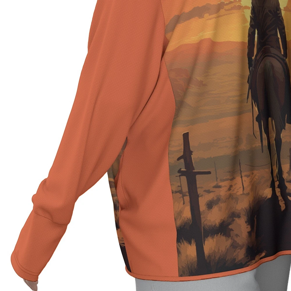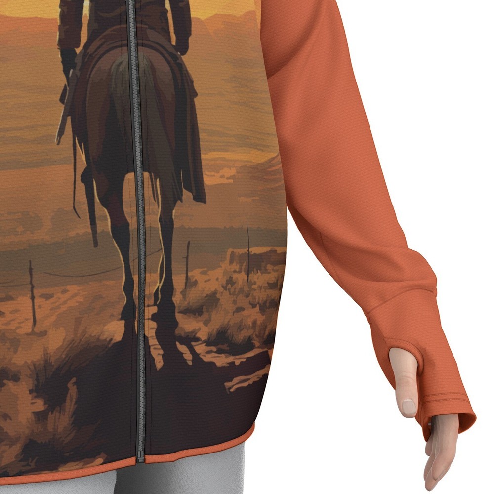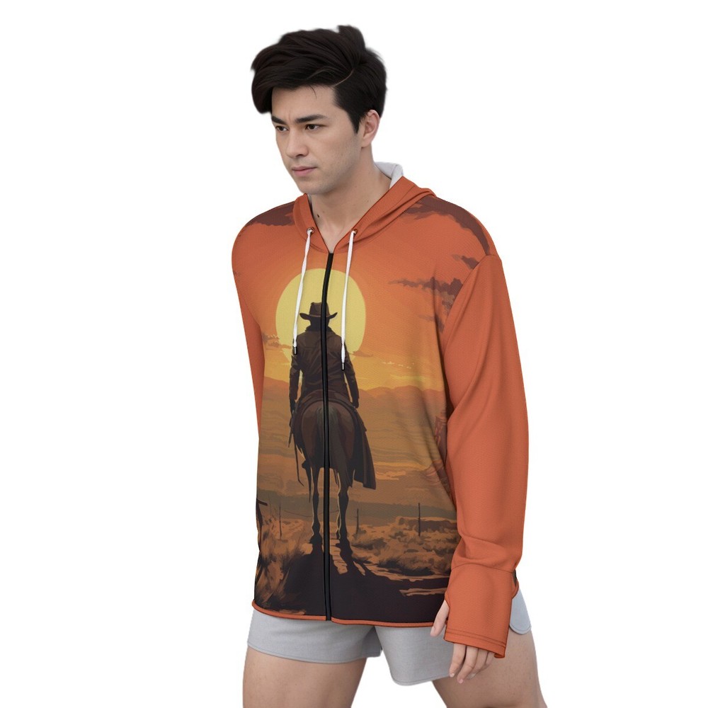 Absolutely love this hoodie! The sunset horse design is gorgeous and the UPF 50 fabric is perfect for sunny days. It's so comfortable with the thumb holes and adjustable fit. Great quality and unique style that gets compliments everywhere I wear it!