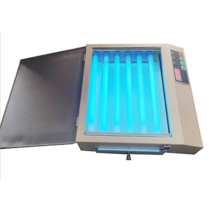 eBay Mini UV Exposure Unit With Drawer for Hot Foil & Pad Printing & Stencils Power Voltage: 220V or 110V Wavelength: 3650 Light source: UV light 6×8w powerful Ultra lamps Power: 50W Maximum Exposure Area: 210*260mm Exposure duration: 0—5.5 minutes Weights: 5.5kg Machine Dimension: 320*310*90m Function: making polymer plat Easy to replace twist ‘n lock UV lamps Unique air circulating vents to prevent overheating Firm contact between artwork and media
