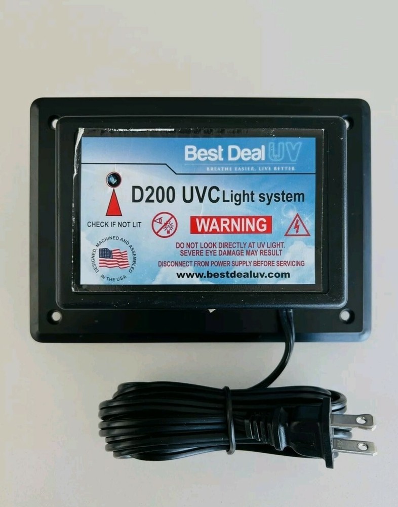 UV Light For Air Conditioning In Duct For HVAC AC - clearance priced. This is the same items that hvac installers charge 600$ or more for!!! UV LIGHT ultraviolet hvac dual lamp duct . 120v uv-c dual light for a/c duct. This is a powerful uvc unit that are rated for Air systems 1-5 tons PROUDLY DESIGNED IN USA Installation is very easy 15 min, just cut two 1.75 inch holes in your duct slip the lamp inside and attach the 4 screws (included in box), then simply plug it in with the 9 ft cord included Dimensions in Duct: 8" Power 120Volts 50/60Hz EPA Est No 96373-FL-1 OZONE FREE bulbs are germicidal UVC and put out 253.7NM Easy to install!