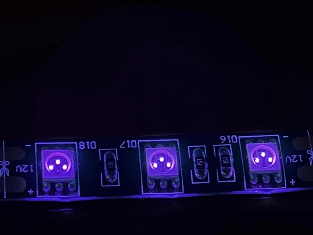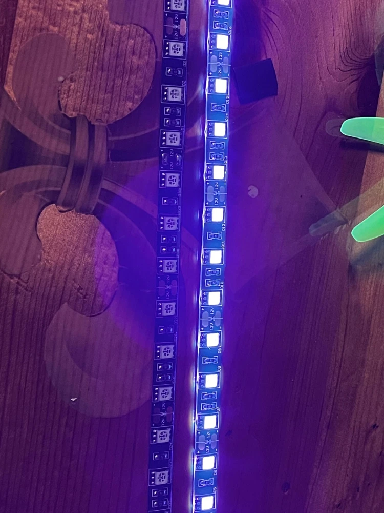 UV Ultra Violet Black Light 5050 LED Strip+12v adaptor AC or DC US plug Superbright 5050 60/m SMD , high intensity Ultra Violet Back Lights. Glue, and 2 layers of heat shrink protects your solder joints. nonWaterproof flexible LED strip Maintenance free, easy intallation.Connect red wire to + and black wire to - on any 12v power supply.Or just use our new option and get your 120v wall plug, or 12v car cigarette lighter plug. Adhesive backing tape for secure and easy application to most surfaces.Ultra-bright but running at low temperature. Light up your car or home with the ultraviolet black lights to make florescent colors super bright while hiding dull color.For Auto use Always use a fuse to protect from hazard.Our Auto cig lighter 12v plug comes with a fuse built in... Need your Ultra Violet Black Lights FAST? Most orders made by 12:00 noon are in the mail on the same day! I send them USPS with tracking on every order.Also I personally test each light before shipping. If you happen to receive a defect,simply contact me and we will fix it, so I ask that you Please leave positive feedback. I aim to satisfy each of you... Specifications: LED type: 5050 SMD, UV Black Light 3 led's per bulb for higher output Beam angle: 120 degree Input Voltage: 12V DC, Power Plug Optional Working Temp: -20~505. Cutable every, 3 LED's Self-adhesive back for secure and easy application Super small to conceal them easy,but very bright You may extend the wires to the size you need.Also these strips are very low watt's. LED lights are the light of the future. They last up to 50,000 hours, They don't put out much heat, and use around 1/4 power as incandescent lighting. I like to communicate with my buyers to make sure they are satisfied with there order, and I will take special orders from anyone who needs a size that I don't offer here. Just leave me a message and I will respond within the day most of the time. Thank you for your time and Have a very merry day... Mark Bordelon