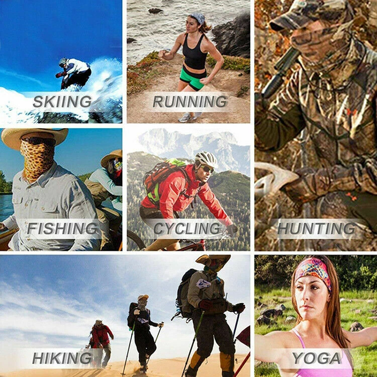- Made of polyester, high elasticity, soft, light feeling, quick dry. - Multifunctional, can protect you from sun's rays, wind, cold in all seasons. - With adjustable rubber band, fit diferent peoples demands. - works as face cover, neck gaiter, headband, bandana, balaclava, beanie, helmet liner, etc. - Great for camping, hiking, hunting, fishing, bird watching & other outdoor activities. - Material: Polyester Package Includes: 1 Piece Neck Gaiter Half Face Mask