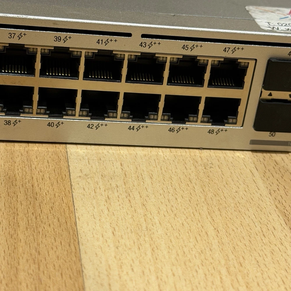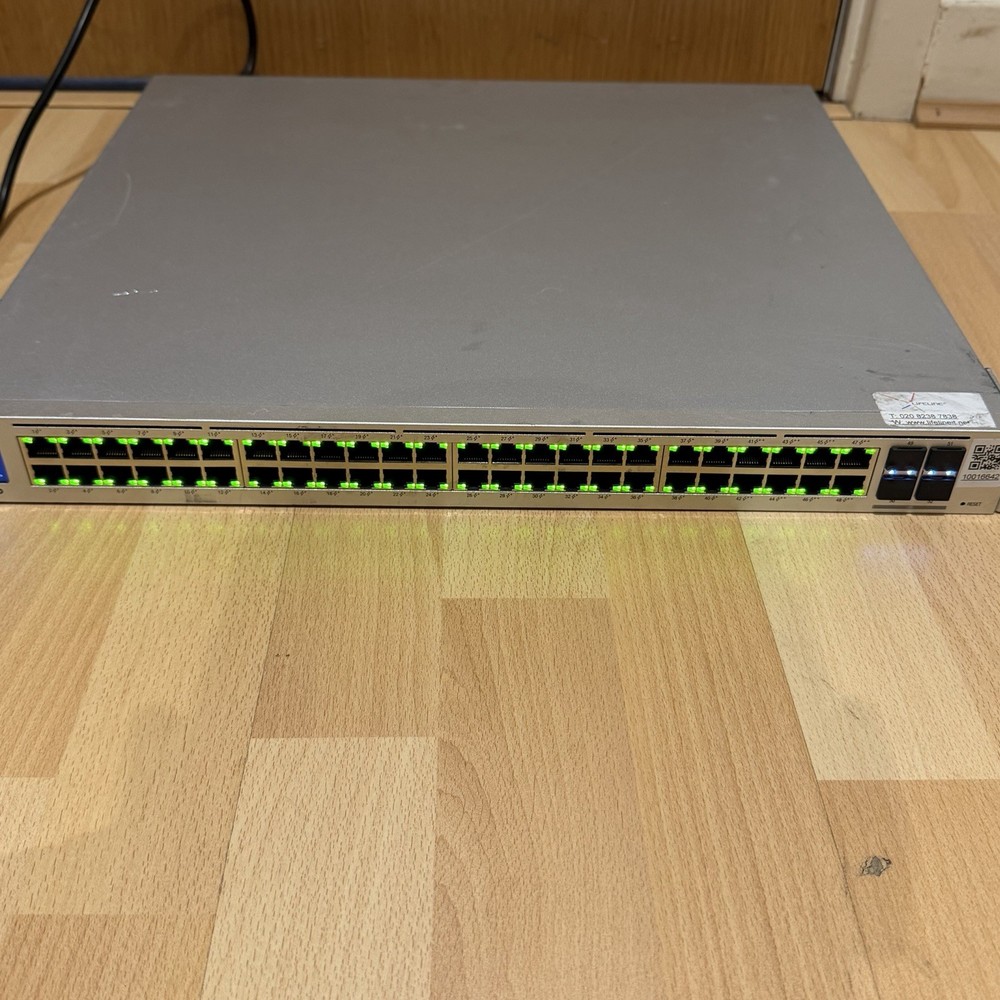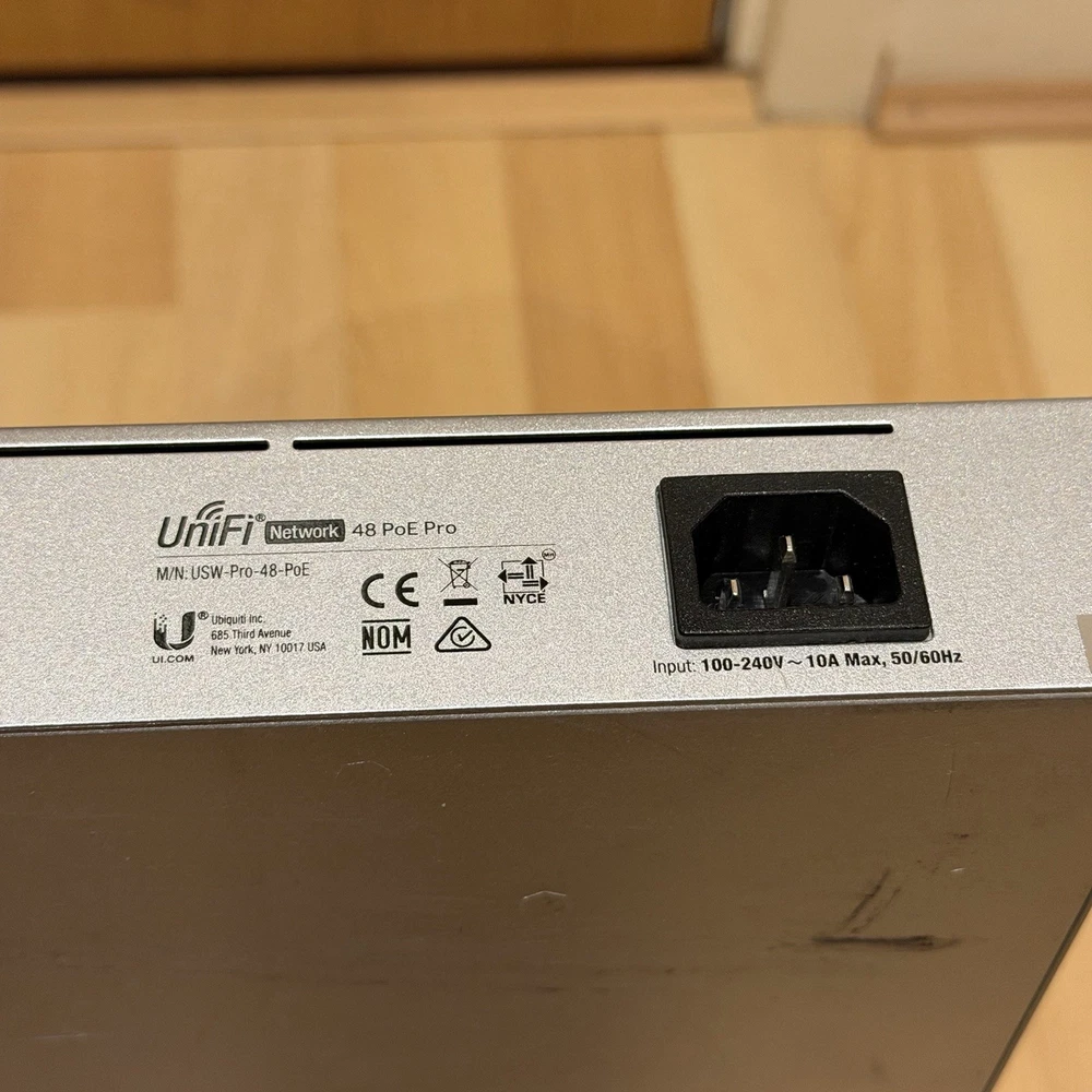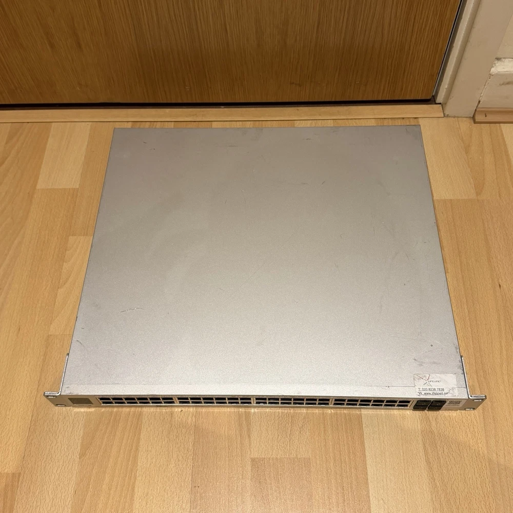 Ubiquiti UniFi USW-Pro-48-PoE (Model: USW-Pro-48-PoE). This is a professional-grade, Layer 3 managed switch featuring 48 Gigabit Ethernet ports and 4 10G SFP+ uplink ports. Key Features: • (40) PoE+ IEEE 802.3at/af Ports (Ports 1-40) • (8) 60W PoE++ IEEE 802.3bt Ports (Ports 41-48) • (4) 10G SFP+ Ports for high-speed uplinks. • 1.3" Color Touchscreen for real-time status monitoring. • Near-Silent Cooling making it suitable for office environments. • UniFi SmartPower RPS support for power redundancy. Condition & Testing: The unit has been powered on and the LCM (Liquid Crystal Monitor) is fully functional, as seen in the photos. All port LEDs cycle correctly during the boot sequence. The casing shows some minor cosmetic wear/scuffs from rack mounting, but is in overall good physical condition. Sold as Seen: This unit is being sold based on the provided photographs and power-on test. • Inclusions: Includes the switch and a standard UK power cable only. • Exclusions: No rack ears, original packaging, or additional networking cables included.
