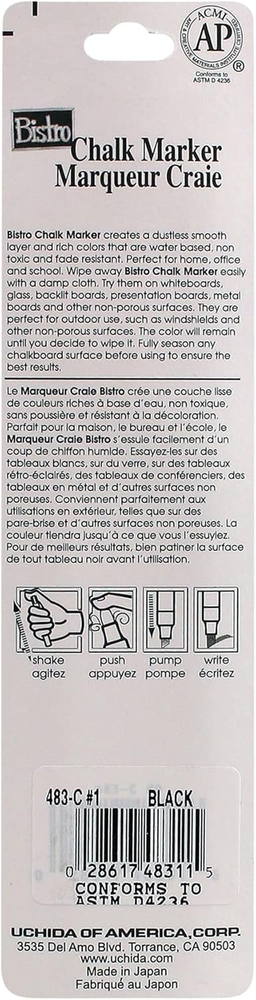 Store New Arrivals Add to Favorite View Feedback Contact Uchida 483-C-1 Chisel Tip Bistro Chalk Marker, Black Description Item model number 483-C-1 Item Weight 0.8 ounces Number of Items 1 Product Dimensions 0.69 x 0.69 x 5.5 inches Country of Origin Japan Ink Color Black Recommended Uses For Product Light Boards Point Type Chisel Black in color Chalk marker Chisel tip pen Pigmented and water based Opaque chalk marker Uchida's Bistro Chalk Markers write on chalkboards, light boards, windows and windshields. They are opaque, water based, pigmented and erasable when dry. This pen has a chisel tip. ABOUT US We offer the best prices around on high quality products. Our E-store includes media such as books, movies, music and games while offering electronics, toys, sporting apparel, clothing, tools, general home, garden items and more. SHIPPING We are always working hard to ensure your package arrives as soon as possible. Please understand that some factors like weather, high postal traffic, and the performance of shipping companies are outside of our control. We offer free shipping to the lower 48 states and ship within 2 business days of payment, usually sooner. We do not accept P.O. Boxes. Please provide a physical address. For shipping outside of the continental USA, we only use eBay's Global Shipping Program.The item is shipped to KY and then sent to the rest of the world. International customers are responsible for all duties and taxes. Continue to check out in order to calculate costs for shipping the item to your country. Messages regarding eBay's Global Shipping Program MUST be directed at eBay EXCLUSIVELY. RETURNS We offer a 30-Day Return Policy on items which you are not completely satisfied with. You have the option for a full-refund or an exchange of the item. No returns are available on items shipped outside of the USA. PAYMENT We accept PayPal. CONTACT US This page content is yet to come Please ad us to your favorite seller and visit again later Thank You CUSTOMER SATISFACTION We try our very best to make sure every customer is completely satisfied. If there's a problem, message us! We're happy to help. WE ACCEPT Copyright © 2021 AutoDS. | All Rights Reserved