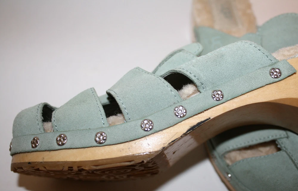 Ugg Authentic Aqua Blue Suede Clogs US 6 F10005L Sheepskin Lined insole In excellent condition; worn a few times I have been selling on ebay since 1999; buy with confidence here!