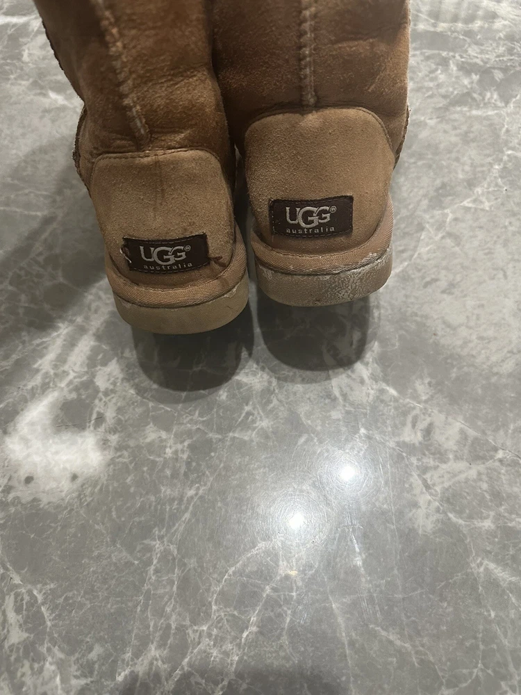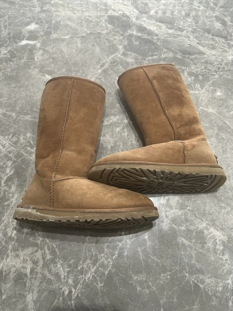 Ugg Boots Adult Size 5 Tall Classic Tan. Condition is Pre-owned. Shipped with USPS Ground Advantage.
