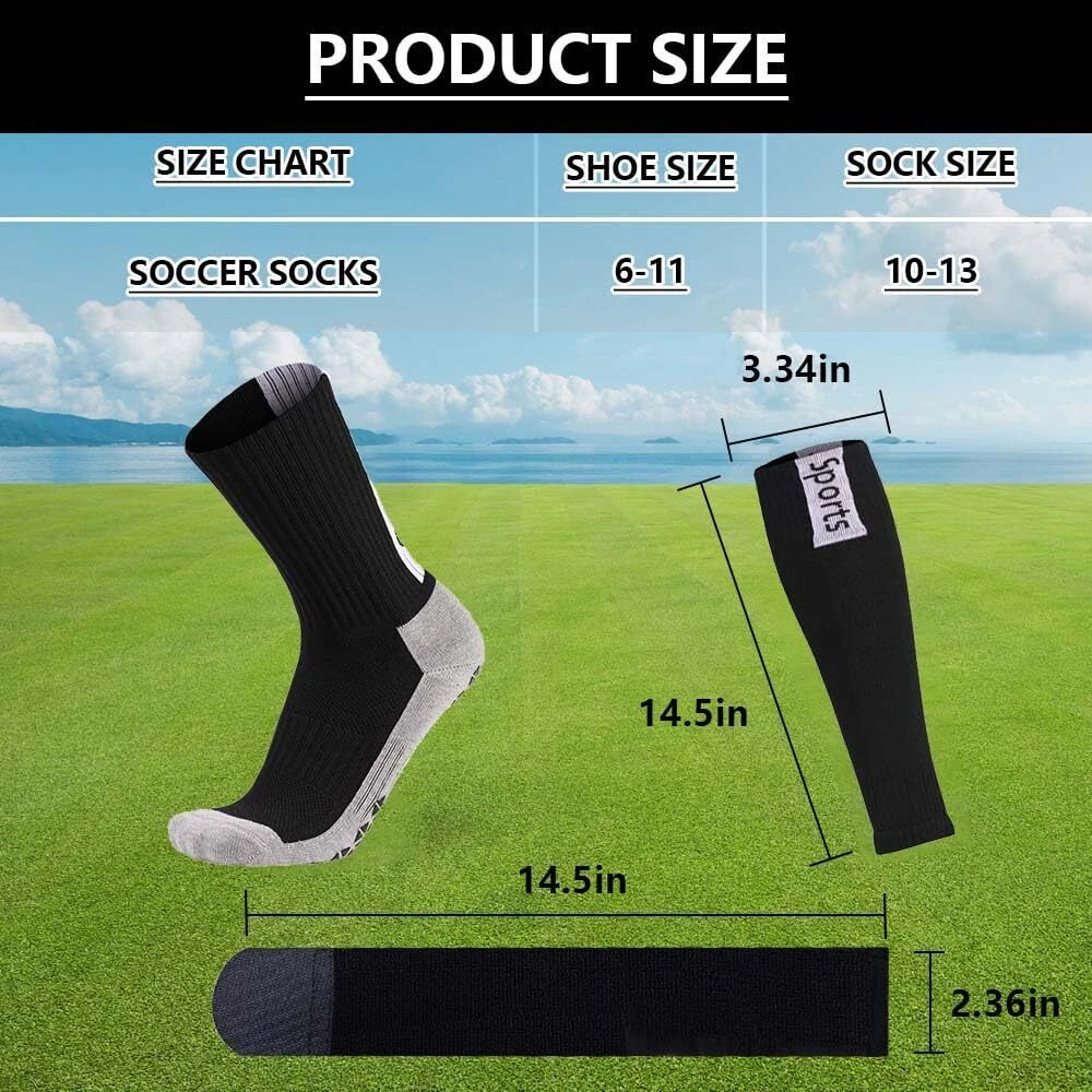 Ukontagood 1 Pair Mens Grip Soccer Socks, 1 Pair Soccer Sleeve Socks with 1 Pack Package includes: 1 pairs of grip soccer socks fit 6-11 men size, 1 pairs of shin sleeves, 1 Pair of shin guards, and 2 Pcs shin straps, a total of nine pieces of professional football match equipment to protect you and prevent you from injury and enhance your performance on the field. Excellent anti-slip performance: Our men's non-slip football socks have a new and unique design, and a large number of non-slip rubber sheets are added to the bottom of the socks, which greatly reduces the possibility of slipping on the soles of your feet when you wear our socks for sports, enabling you to perform faster Start and change direction to give full play to your strengths on the field. Comfortable and breathable soccer sleeve socks: Our shin sleeves are made of high-quality materials, which not only ensure wearing comfort but also provide excellent breathable performance, ensuring that the shin guards can accurately fit the shin, making you more comfortable during the game. Excellent protective performance: The sturdy shin guards can effectively withstand external impacts. The strong and tough material ensures that the user is not harmed and the product is not easily damaged. The soft material inside can effectively buffer the energy caused by the impact, thereby protecting the user from injury and pain. Widened shin guard straps: We have specially customized the widened leg guard straps, which can more firmly stabilize the position of the leg guard so that it will not deviate from the position during strenuous exercise, solving potential troubles you may encounter during the game. 5 Pcs grip soccer socks and accessisons professional game set Product Feateres ·Superb anti-slip performance ·High-quality and breathable materials ·Sturdy Protection ·Long-lasting for high-intensity use If you have any questions, please contact us, and we will reply you in time. Shipping We offer FREE shipping on all orders! We ship within Three business days of payment, usually sooner. We use a selection of shipping services such as UPS, FedEx, USPS etc. We only ship to the lower 48 states, no APO/FPO addresses or PO Boxes allowed. Local pickups and combined shipping options are not provided at this time. Return You can return a product for up to 30 days from the date you purchased it. Any product you return must be in the same condition you received it and in the original packaging. Please keep the receipt. Payment We accept payment by any of the following methods: PayPal Please pay as soon as possible after winning an auction, as that will allow us to post your item to you sooner! Feedback Customer satisfaction is very important to us. If you have any problem with your order, please contact us and we will do our best to make you satisfied. Contact Us If you have any queries, please contact us via ebay. We usually respond within 24 hours on weekdays. Please visit our eBay store to check out other items for sale! Thank you for shopping at our store.