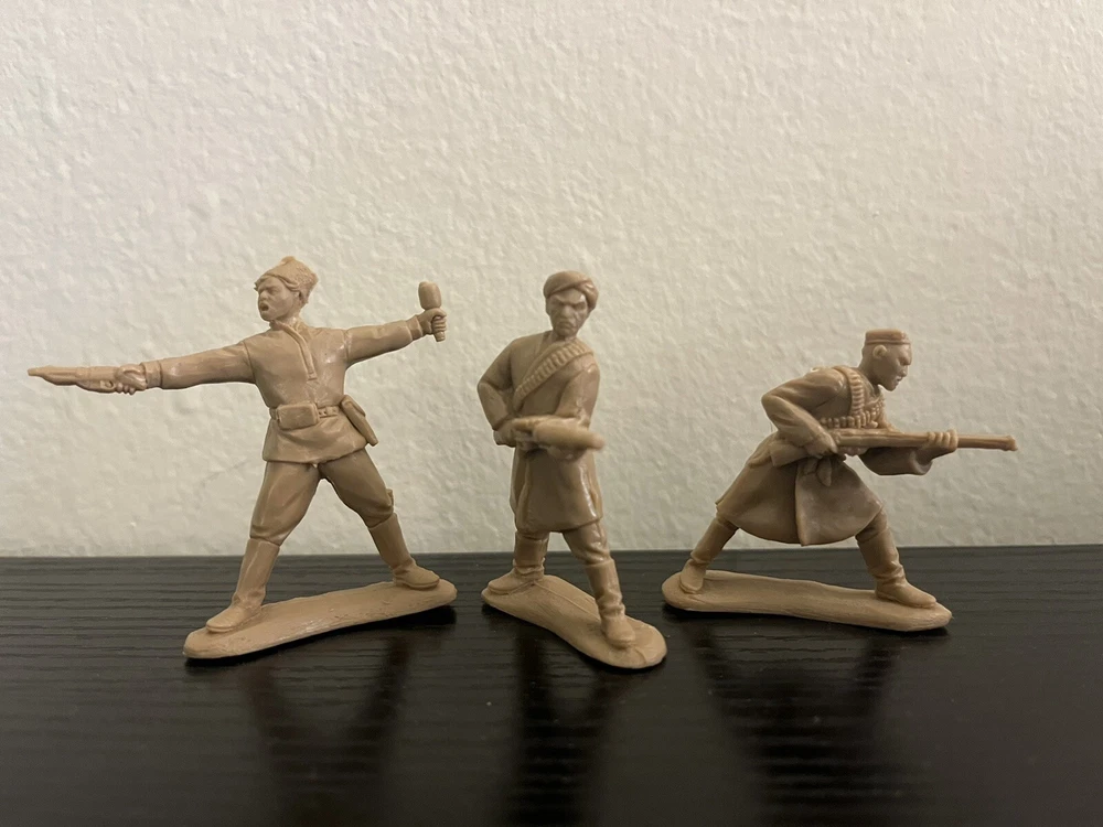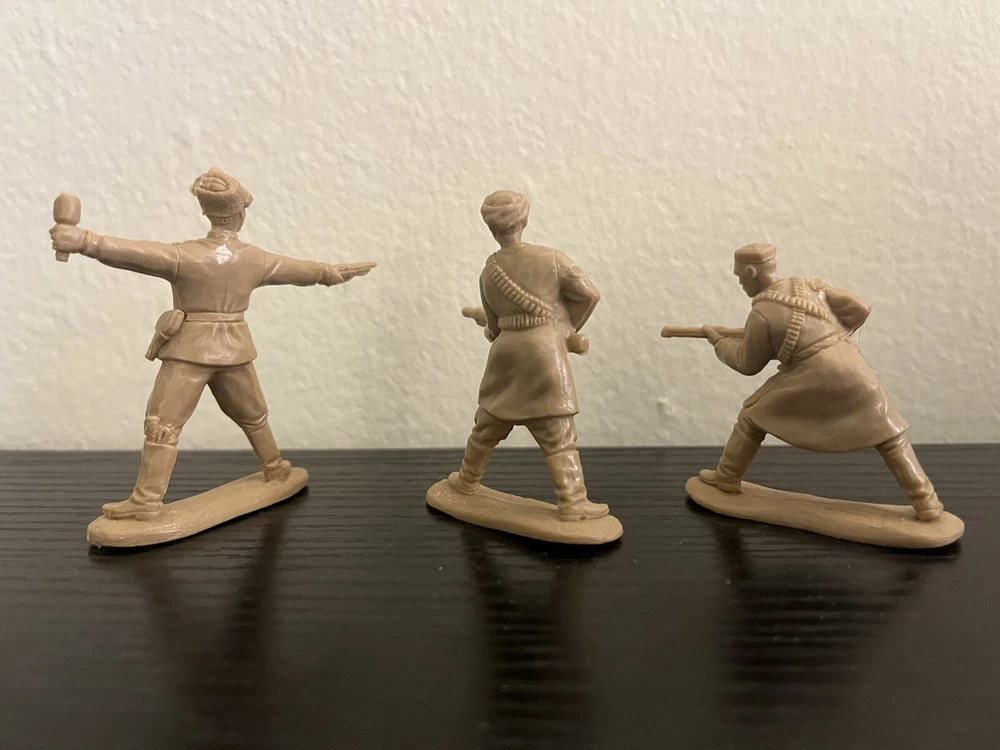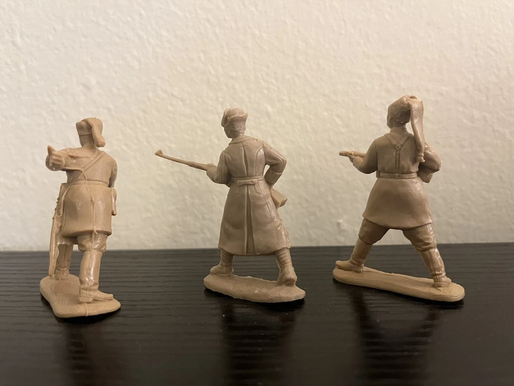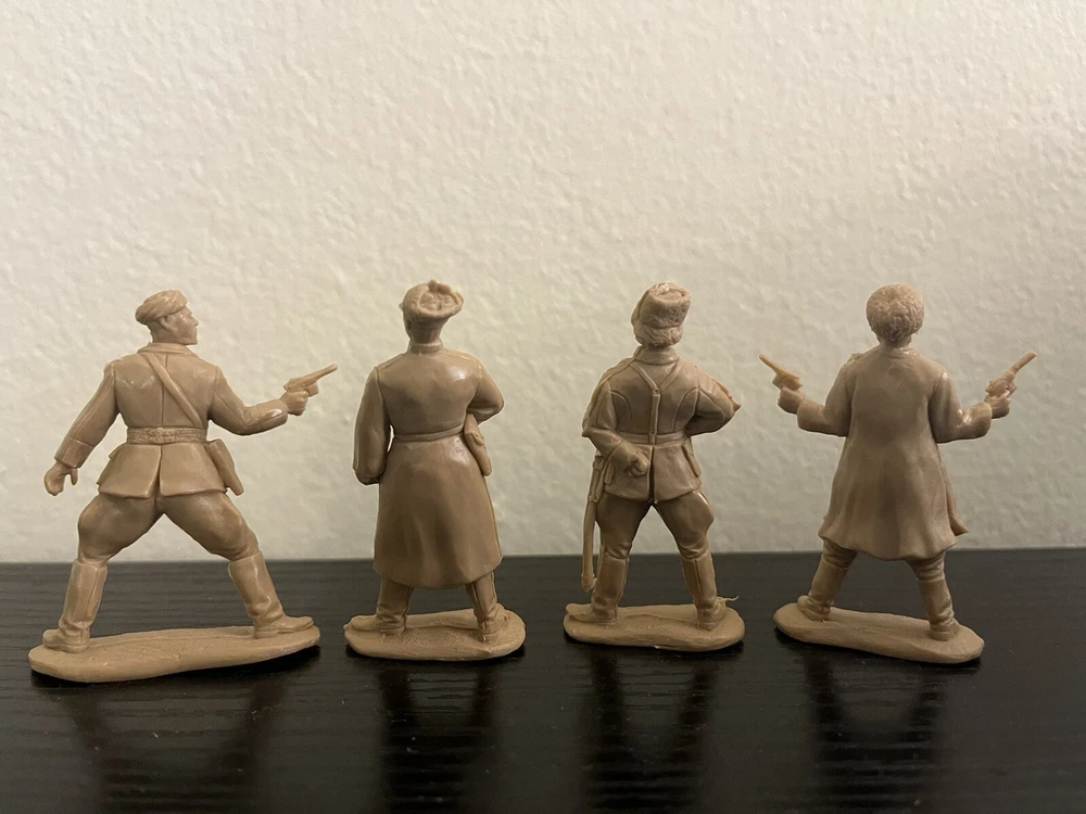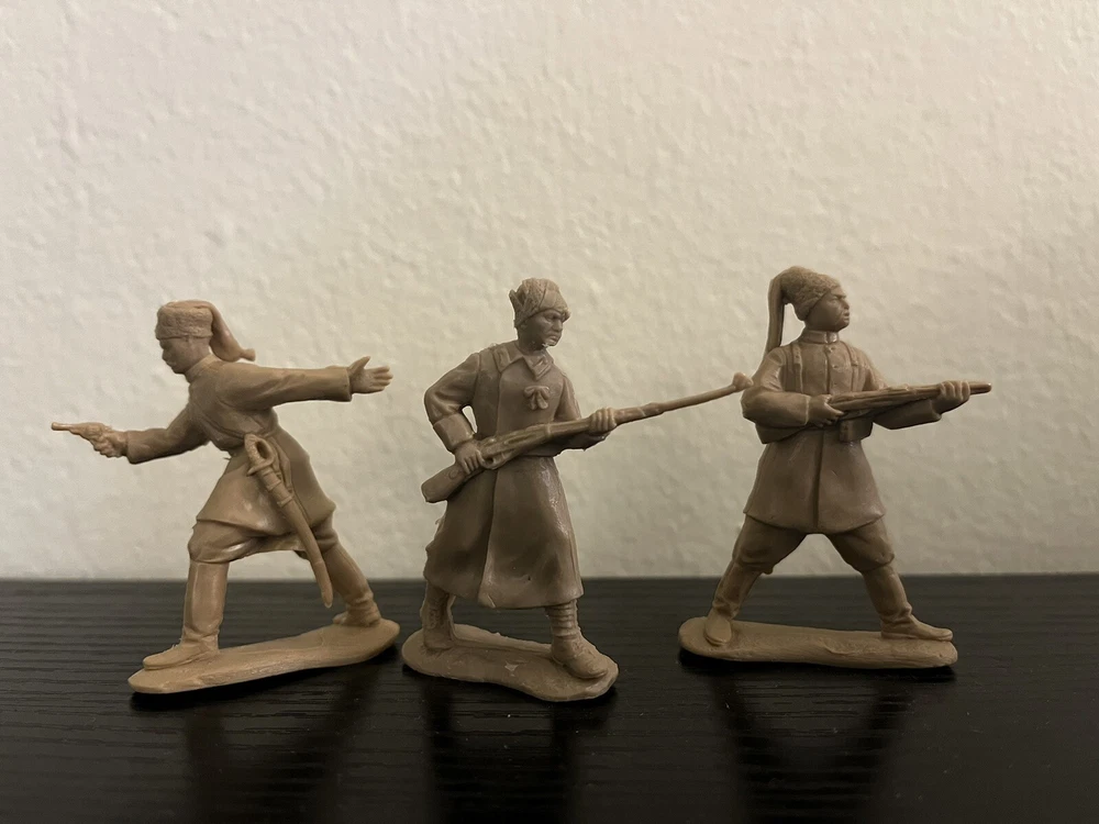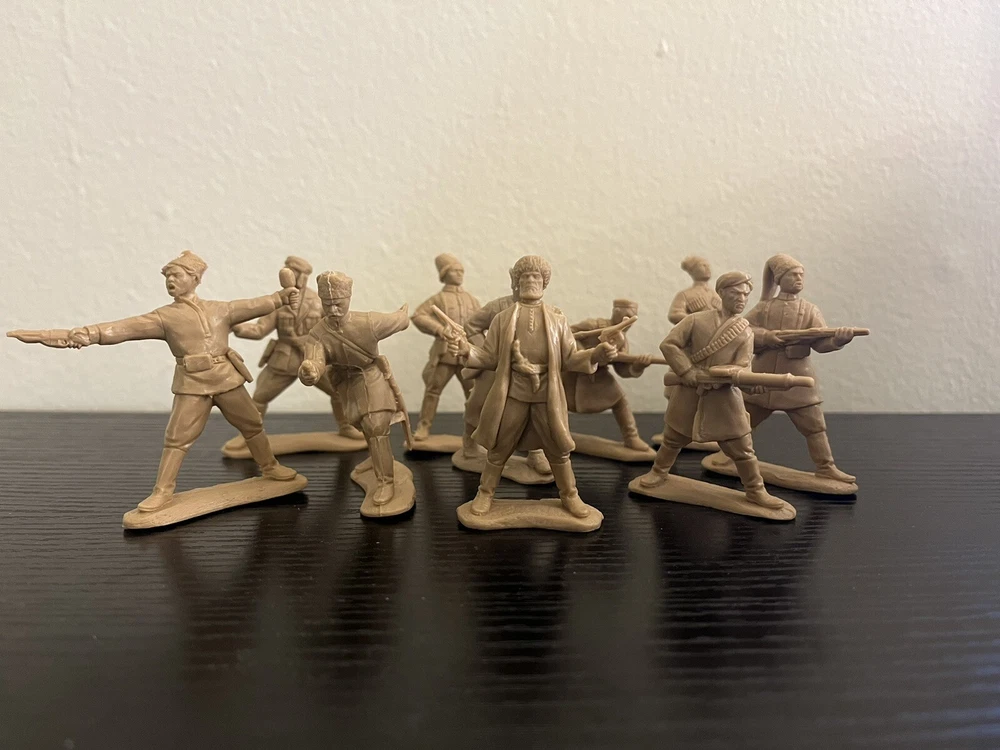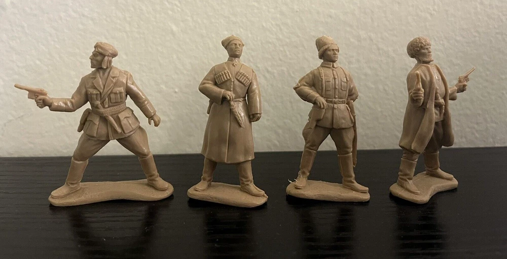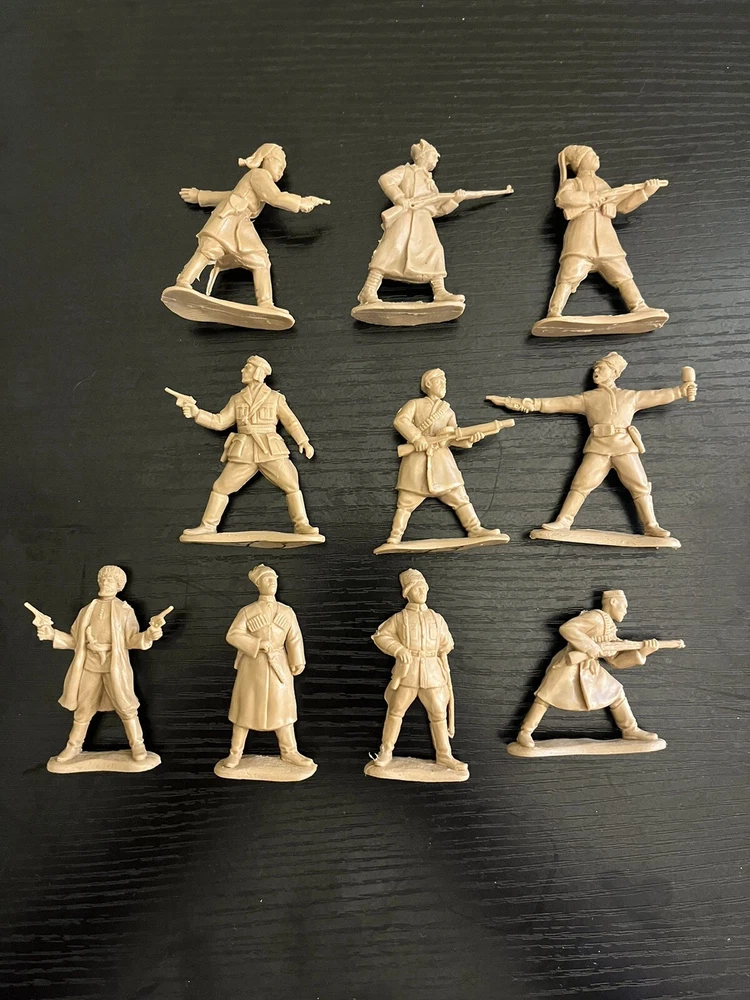A set of toy soldiers on the theme of the Civil War in Russia 1917-1920 - the forces of the counter-revolution, Wrangel ,Drozdovsky, Makhno and Black Abdullah. Height 54 mm. Scale 1/32. 10 unpainted figurines in 10 poses. No Box. The disadvantage of Basevich's soldiers is a small circulation - only 300-500 copies of each set, and many sets have already become rarities and you can hardly find them on sale.