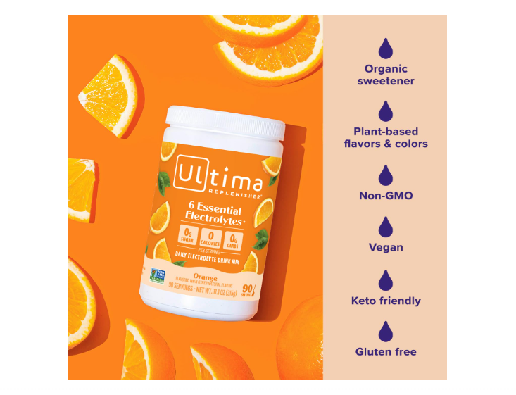 About this item Brand Ultima Replenisher Flavor Orange Primary Supplement Type Vitamin A Unit Count 11.1 Ounce Item Form Powder Item Weight 11.1 Ounces Item dimensions L x W x H 2.88 x 2.88 x 5 inches Special Ingredients Magnesium Citrate, Potassium Phosphate, Aspartate, Calcium Organic Stevia Leaf, Beet Juice Concentrate, Zinc Manganese Citrate Magnesium Citrate, Potassium Phosphate, Aspartate, Calcium Organic Stevia Leaf, Beet Juice Concentrate, Zinc Manganese Citrate Diet Type Keto Product Benefits Hydration Powder Refresh and replenish: Ultima electrolytes powder delivers everyday hydration packed with 6 key electrolytes, vitamin C, zinc and delicious plant-based flavors; Ultima electrolytes provide enhanced hydration with 0 sugar, calories or carbs Naturally delicious: Electrolyte drink mix made with 6 key electrolytes - magnesium, calcium, potassium, chloride, phosphorus and sodium, as well as vitamin C and zinc; naturally sweetened with organic stevia leaf and infused with real fruit flavors What’s inside: Our daily electrolyte drink mix replenishes your electrolyte levels without the sugar, calories or artificial sweeteners; sugar free, gluten free, vegan, keto friendly and Non-GMO Stock up on your favorites: This 90-serving canister is perfect for conveniently storing at home for your daily hydration; simply add 1 scoop to 16 ounces of water and shake or stir well, then add ice if you’d like it cold The Ultima difference: We’ve spent over 25 years taking electrolyte hydration to a delicious new level; you deserve balanced hydration to replenish your body while you’re living your ultimate life, every day
