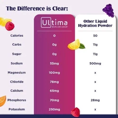 Ultima Replenisher Electrolyte Vegan Drink Mix in Raspberry flavor (2.3oz/20ct) is a sugar-free, vegan, and gluten-free electrolyte powder mix. It contains 6 key electrolytes and trace minerals, and is flavored with real fruit and sweetened with organic stevia according to the product description on eBay. Each 2.3oz pack contains 20 individual stickpacks, and each stickpack is designed to be mixed with 16 ounces of water.