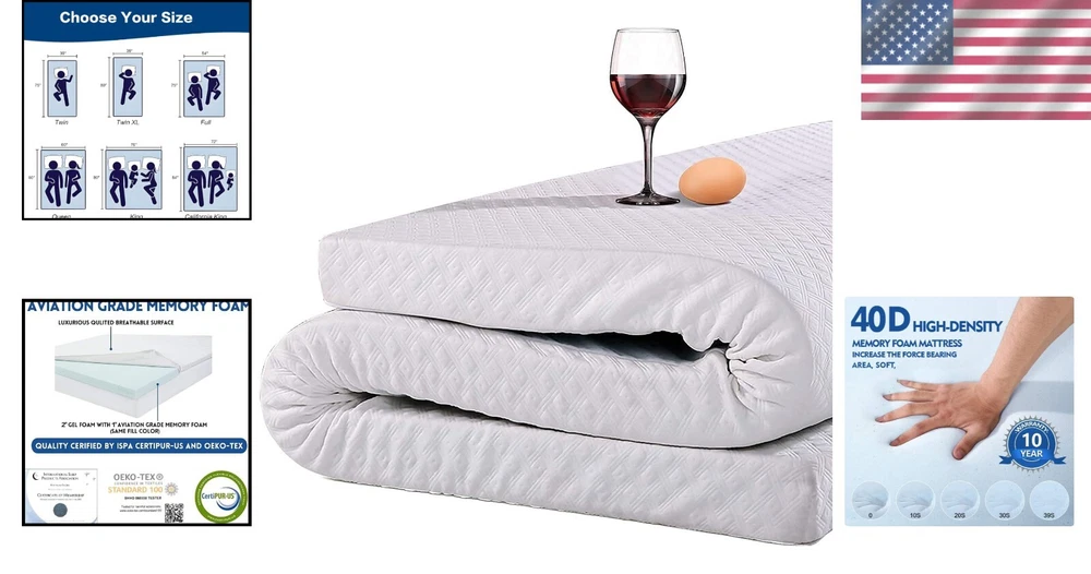 Ultimate Comfort Twin Size 3-Inch Gel-Infused Memory Foam Topper for Pain Relief ‹ › ‹ › ‹ › ‹ › ‹ › ‹ › ‹ › ‹ › ‹ › ‹ › ‹ › Ultimate Comfort Twin Size 3-Inch Gel-Infused Memory Foam Topper Experience unparalleled support and luxurious comfort with our Ultimate Comfort Twin Size 3-Inch Gel-Infused Memory Foam Topper, designed to enhance your sleep quality and relieve pain. Key Features: Pain & Pressure-Relieving: The 3-inch memory foam adapts to your head, back, neck, shoulders, waist, hips, and legs, maintaining spinal alignment and alleviating pressure on key points, ensuring a restful night. Highly Breathable: Crafted with open-cell aviation-grade memory foam infused with cooling gel beads, this topper keeps your body from overheating, providing a refreshing sleep experience compared to standard memory foams. Removable & Washable Cover: Designed for convenience, the cover can easily be removed for cleaning and features anti-slip elastic straps to keep the topper securely in place. Softest Touch: Made from Rayon and polyester using modern weaving technology, enjoy the softest touch and luxurious feel. CertiPUR-US Certified for safety, free of harmful substances such as PBDE fire retardants, lead, mercury, and formaldehyde. Satisfaction Guarantee: We stand by our product with a 365-night 100% satisfaction guarantee. If you are unsatisfied for any reason, please contact us. Why Choose Our Gel-Infused Memory Foam Topper? If you seek to transform your sleep experience, this gel-infused memory foam topper is ideal. It provides targeted support and pain relief while maintaining a cool temperature throughout the night. Its luxurious feel and safety certification ensure that you’re making a wise investment in your health and well-being. Don't settle for restless nights and waking in discomfort. Elevate your sleep today with the Ultimate Comfort Twin Size 3-Inch Gel-Infused Memory Foam Topper and experience the restful nights you deserve! Shipping Free & Fast Shipping - We offer free shipping to most of the USA with a normal delivery time of 3-7 days. However, due to the current situation, additional delivery time (up to 3 weeks) may be required for some items. Alternative Carriers - We may use alternative carriers (e.g. USPS, FedEx, UPS, etc.) to ensure your package arrives safely and on time. Due to the use of multiple carriers, we are unable to provide a tracking number automatically. Handling Time - Orders are processed and shipped within 1-2 business days of receiving cleared payment. Shipping Restrictions - Shipping to Alaska, Hawaii, Puerto Rico, Guam, and other US territories may incur shipping charges or delivery restrictions. Please contact us before ordering, or your order can be refunded/cancelled. State Restrictions - There may be restrictions based on your state of purchase. For example, certain items may not be shipped to California due to state regulations. Contact for Tracking Updates - If you require tracking updates or have any concerns about the delivery of your order, please feel free to contact us, and we will be happy to assist you. Return Please see our eBay Return Policy. Thank you. Payment We accept all major credit cards, PayPal, and Apple Pay for your convenience. Your payment information is secure and encrypted to ensure a safe and seamless transaction. Please complete your payment within 3 days of purchase to avoid any delays in shipping. Feedback Your feedback is extremely important to us. We strive to provide the best products and customer service possible. If you are satisfied with your purchase, please take a moment to leave us a positive review. If you have any concerns or issues with your order, please contact us before leaving negative feedback. We are committed to resolving any problems and ensuring your satisfaction. Contact Us If you have any questions or concerns, please feel free to reach out to our customer support team. You can contact us through the eBay messaging system. We are available Monday to Friday, 9:00 am to 5:00 pm EST, and we will do our best to respond to your inquiry within 24 hours. Thank you for supporting our small family business! UPC: Not Set Item Length: Not Set Item Width: Not Set Unit Quantity: 13.45 Material: Bamboo,Memory Foam,Polyester,Rayon Features: Cooling,Pain Relief,Pressure Relief,Breathable,Removable Cover,Washable Cover,Anti-Slip Straps Care Instructions: Machine Wash Character: Not Set Theme: Not Set Department: Adults Room: Bedroom Labels & Certifications: Not Set Brand: Unbranded Size: Twin Type: Mattress Topper Fill Material: Gel Foam Color: White Pattern: Not Set MPN: Not Set Closure Type: Zip Insulation: Cool Country/Region of Manufacture: Not Set Character Family: Not Set Style: Modern GSM (Grams per Square Meter): Below 150 Shape: Rectangular Model: Not Set Product Line: Not Set Thread Count: 200 or Less Unit Type: Unit