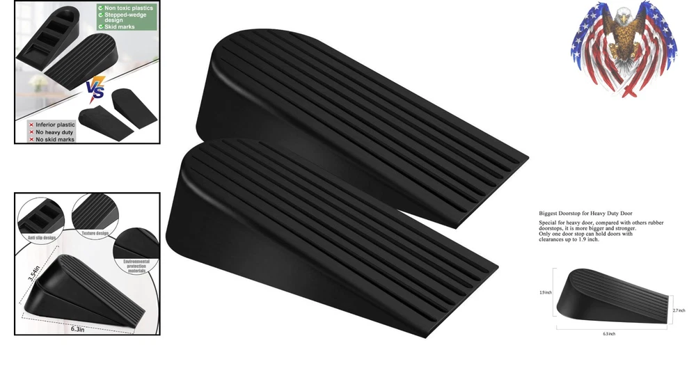 Ultimate Gripping Rubber Door Stop Wedge - Heavy Set for Kids & Pets Safety ‹ › ‹ › ‹ › ‹ › ‹ › ‹ › ‹ › ‹ › ‹ › Ultimate Gripping Rubber Door Stop Wedge Heavy Duty Design for Kids & Pets Safety Features: Biggest and Strongest Door Stopper: Crafted from high-quality rubber material, specifically designed for heavy doors. Our door stop is larger and more robust compared to other rubber doorstops in the market, holding doors with clearances up to 1.9 inches effortlessly. Versatile for All Floor Surfaces: Engineered to work flawlessly on a variety of surfaces, including carpet, wood, tile, and concrete. Ideal for both indoor and outdoor applications in homes, offices, cottages, garages, schools, and hospitals. Safe for Your Loved Ones: Made from non-toxic, flexible rubber, our door stop won’t scratch or damage floors and doors, ensuring safety for children and pets from slamming doors. Exemplary Grip: Featuring a unique hollow design, our wedge door stop provides exceptional gripping power, effectively preventing slamming, slipping, or sliding of doors. Large Commercial Application: Designed for heavy-duty use, this door stopper is perfect for commercial settings. Suitable for the bottom of doors in offices, schools, and industrial spaces. Why Choose the Ultimate Gripping Rubber Door Stop Wedge? Are you seeking a reliable door stop that combines strength, safety, and versatility? Look no further! The Ultimate Gripping Rubber Door Stop Wedge is crafted to hold up against heavy doors, ensuring safety for both children and pets. Its ability to grip effectively on various surfaces makes it the ideal choice for any environment, from your home to commercial spaces. Don’t settle for less when it comes to safety and convenience. Make your purchase today and provide peace of mind with the ultimate door stop solution! Shipping Free & Fast Shipping - We offer free shipping to most of the USA with a normal delivery time of 3-7 days. However, due to the current situation, additional delivery time (up to 3 weeks) may be required for some items. Alternative Carriers - We may use alternative carriers (e.g. USPS, FedEx, UPS, etc.) to ensure your package arrives safely and on time. Due to the use of multiple carriers, we are unable to provide a tracking number automatically. Handling Time - Orders are processed and shipped within 1-2 business days of receiving cleared payment. Shipping Restrictions - Shipping to Alaska, Hawaii, Puerto Rico, Guam, and other US territories may incur shipping charges or delivery restrictions. Please contact us before ordering, or your order can be refunded/cancelled. State Restrictions - There may be restrictions based on your state of purchase. For example, certain items may not be shipped to California due to state regulations. Contact for Tracking Updates - If you require tracking updates or have any concerns about the delivery of your order, please feel free to contact us, and we will be happy to assist you. Return 30-Day Hassle-Free Returns - We want you to be completely satisfied with your purchase. If you are not, you can return the item within 30 days of receiving it for a full refund or exchange. Easy Return Process - To start a return, simply contact us and we will provide you with a prepaid return shipping label and detailed instructions. Restocking Fee - There are no restocking fees for returns. However, the buyer is responsible for return shipping costs if the return is not due to a seller's error. Refund Processing Time - Refunds will be processed within 5 business days of receiving the returned item in its original condition. Payment We accept all major credit cards, PayPal, and Apple Pay for your convenience. Your payment information is secure and encrypted to ensure a safe and seamless transaction. Please complete your payment within 3 days of purchase to avoid any delays in shipping. Feedback Your feedback is extremely important to us. We strive to provide the best products and customer service possible. If you are satisfied with your purchase, please take a moment to leave us a positive review. If you have any concerns or issues with your order, please contact us before leaving negative feedback. We are committed to resolving any problems and ensuring your satisfaction. Contact Us If you have any questions or concerns, please feel free to reach out to our customer support team. You can contact us through the eBay messaging system. We are available Monday to Friday, 9:00 am to 5:00 pm EST, and we will do our best to respond to your inquiry within 24 hours. Buy it now and enjoy a pleasant shopping experience! UPC: Not Set Material: Rubber Features: Floor Mount,Non-Scratching,Heavy Duty,Ultimate Gripping Power,Works on All Floor Surfaces Installation: Door Stopper Compatible Brand: Door Stopper Brand: Unbranded Color: Black Type: Bumper Finish: Rubber Item Width: Not Set Item Diameter: Not Set Item Length: Not Set MPN: Not Set Item Depth: 1.9 in Design: Wedge Style: Wedge Number in Pack: 2 Country/Region of Manufacture: Not Set Model: Not Set Item Weight: 1.28 lb Compatible Model: Not Set Manufacturer Warranty: Not Set