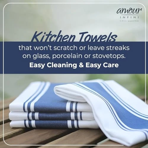 These kitchen towels are amazing! Super soft, super absorbent, and the perfect size for drying dishes or wiping counters. Love the hanging loop—makes storage so easy. They dry quickly and hold up well after washing. The blue stripes add a nice touch to my kitchen. Fast shipping and great seller—definitely recommend!