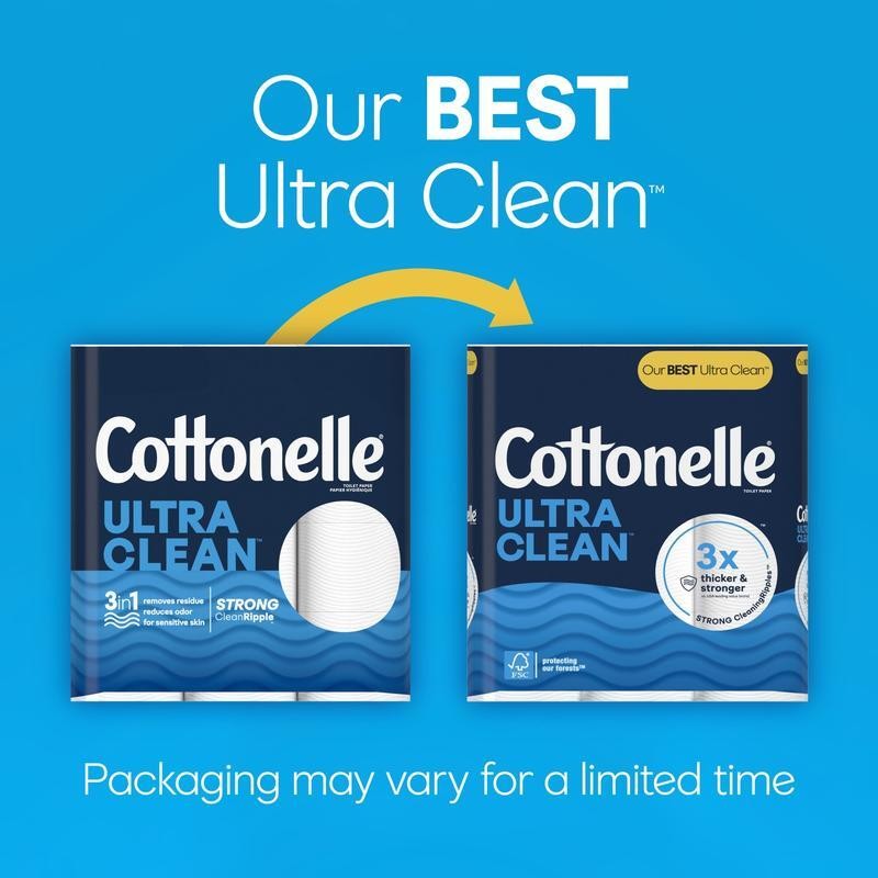You may also like Recycled Fiber 2-Ply Toilet Paper 80 Rolls 473 Sheets Eco Friendly Bulk New 74.1 USD 78.0 USD Free shipping 5% off Septic Safe Toilet Paper 1-Ply Small Core 2000 Sheets High Capacity 24 Rolls New 61.09 USD 64.31 USD Free shipping 5% off Angel Soft Ultra Professional 2-Ply Embossed Toilet Paper 400 Sheets 60 Rolls US 83.39 USD 87.78 USD Free shipping 5% off Septic Safe 2-Ply Toilet Paper 400 Sheets Economical Soft Absorbent 96 Rolls New 61.09 USD 64.3 USD Free shipping 5% off Ultra Strong Toilet Paper 9 Mega XXL Rolls 440 Sheets 2 Ply Septic Safe New 23.56 USD 24.8 USD Free shipping 5% off Standard 2-Ply Toilet Paper 400 Sheets Roll 96 Count Soft Reliable Septic Safe 46.21 USD 48.64 USD Free shipping 5% off Ultra Soft Toilet Paper 12 Mega Rolls 2 Ply Septic Safe Unscented 440 Sheets New 31.19 USD 32.83 USD Free shipping 5% off Jumbo Roll Bath Tissue 2 Ply Unscented Nonperforated 1000ft 12 Pack Eco Friendly 43.47 USD 45.76 USD Free shipping 5% off 2-Ply Bulk Toilet Paper 20 Rolls 550 Sheets Individually Wrapped Septic Safe New 50.91 USD 53.59 USD Free shipping 5% off Ultra Soft Toilet Paper 18 Mega XL Rolls 1 Ply Absorbent Smooth Tear Septic Safe 35.06 USD 36.91 USD Free shipping 5% off 3 Ply Mega Rolls Toilet Paper 36 Rolls Ultra Plush Soft Absorbent Lint Free New 40.85 USD 43.0 USD Free shipping 5% off 3 Pack 1000 Sheets Toilet Paper 36 Rolls Clog Free Septic Safe Bulk Bath Tissue 109.81 USD 115.59 USD Free shipping 5% off With Cottonelle Ultra Clean Toilet Paper, cleanliness meets quality. Cottonelle Ultra Clean Toilet Paper Rolls feature strong CleaningRipples that clean better* and remove more in just one wipe**. In fact, our toilet paper removes residue, reduces odor, and is safe for sensitive skin. Plus, Cottonelle Ultra Clean Bath Tissue is 3x thicker and stronger***. Using fibers that are 100% plant-based, Cottonelle Toilet Paper is FSC-certified, supporting responsible forestry. Each Cottonelle 1-Ply Mega Roll has 284 sheets per roll and is free of added perfumes and dyes. For more ways to feel clean, pair Cottonelle toilet paper with Cottonelle flushable wet wipes to remove up to 100% of residue and odor****. Keep Cottonelle stocked and order online with delivery. (*vs. the leading US value brand) (**vs. the leading US value brand) (***per sheet vs. the leading US value brand) (****using wet + dry vs. dry alone) 24 Mega Rolls of Cottonelle Ultra Clean Toilet Paper; 284 sheets per roll; Cottonelle toilet paper packaging and product may vary Superior Clean*: Each Cottonelle toilet paper roll is made with strong CleaningRipples that are designed to clean better* (*than the leading US value brand) Thick & Strong: Our toilet tissue is 3x thicker and stronger** (**per sheet vs. the leading US value brand) Removes More in One Wipe***: Our bath tissue removes residue, reduces odor, and is designed for sensitive skin (***vs. the leading US value brand) Cottonelle Ultra Clean Toilet Paper is free of added perfumes and dyes Cottonelle 1-ply toilet tissue is FSC certified, supporting responsible forestry and only uses fibers that are 100% plant-based Pair Cottonelle toilet paper with Cottonelle flushable wipes together to remove up to 100% of residue and odor**** (****using wet + dry vs. dry alone) Order Cottonelle toilet tissue online with delivery to your door or pickup in store You may also like Blackout Sheer Grommet Curtains Thermal Insulation Window Treatment 2 Pack New 29.2 USD 30.74 USD Free shipping 5% off Saucer Chair Accent Chair Portable Foldable Compact Bedroom Living Room Kid Teen 41.5 USD 43.68 USD Free shipping 5% off 10 Ft Patio Umbrella Outdoor Shade Auto Tilt Vented Canopy Garden Terracotta New 78.09 USD 82.2 USD Free shipping 5% off 73" Metal Hall Tree Coat Rack Stand& Shoe Storage Bench Clothes Hanger Organizer 54.14 USD 56.99 USD Free shipping 5% off Heavy Duty 33 Gallon Trash Bags 100 Pack Durable Extra Strong Home Kitchen Lawn 27.18 USD 28.61 USD Free shipping 5% off Emergency Food Freeze Dried Dehydrated Fruit Variety 86 Servings Snacks Recipes 91.14 USD 95.94 USD Free shipping 5% off Store Toy Organizer 6 Bin Children Space Playroom Storage Large Heavy Duty Home 35.62 USD 37.5 USD Free shipping 5% off Panini Press Indoor Grill Gourmet Sandwich Maker Nonstick Easy Clean Fat Cutting 41.55 USD 43.74 USD Free shipping 5% off 12in Aluminum Nonstick Fry Pan Soft Touch Handle Even Heat Sauté Cooking Kitchen 17.77 USD 18.71 USD Free shipping 5% off 20 Piece Silver Everyday Flatware Set Stainless Steel Service 4 Durable Cutlery 31.78 USD 33.45 USD Free shipping 5% off Power Saws 15-Amp 7-1/4-Inch Corded Circular Saw with Single Beam Laser Guide 107.19 USD Free shipping Mid Century Modern Coffee Table W/ Storage Drop Down Compartment Gold Legs New 164.43 USD 173.08 USD Free shipping 5% off