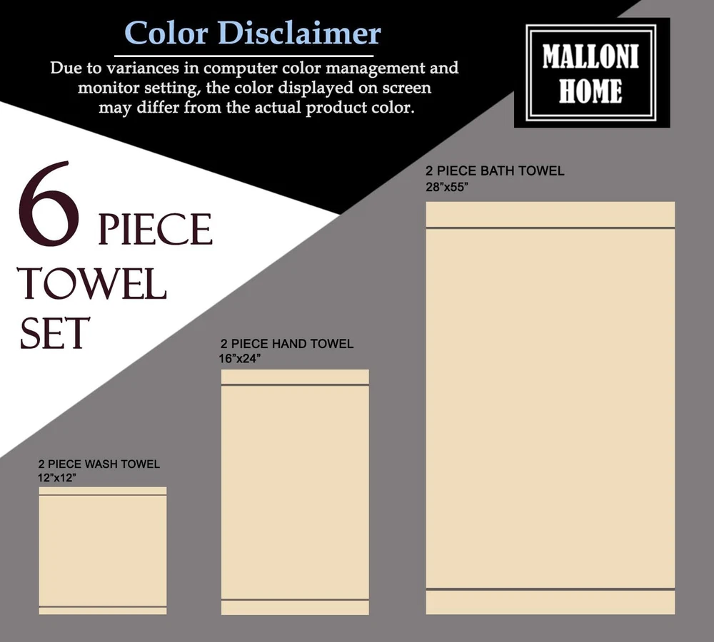 Ultra Soft 6 Pack Cotton Towel Set, Contains 2 Bath Towels 28x55 inch, 2 Hand Towels 16x24 inch & 2 Wash Coths 12x12 inch, Ideal Everyday use, Compact & Lightweight - Black Each set contains 2 oversized bath towels 28x55 inches, 2 hand towels 16x24 inches & 2 wash cloths 12x12 inches 100% Pure cotton for softness, absorbency & durability - Outdoor Lightweight Quick Dry Towel Set Complimented set for daily use, hotel & spa, quick drying & multipurpose usage 100% Natural materials & free from harmful chemicals / materials - safe for you & your family Machine washable & dryable, wash in cold water, tumble dry low - wash separately before first use cotton towel sets is a beautiful and carefully crafted product with lot of attention to details. Basic towel, quality product, low cost, everyday use, soft feel and high absorbant. Eco friendly. Its less weight help to consume less water in washing, less energy in drying, less detergent for laundry. Sustainable product without compromising on the comfort and style. Made in a state of the art vertically integrated facility. Shipping We offer FREE shipping on all orders! We ship within Three business days of payment, usually sooner. We use a selection of shipping services such as UPS, FedEx, USPS etc. We only ship to the lower 48 states, no APO/FPO addresses or PO Boxes allowed. Local pickups and combined shipping options are not provided at this time. Return You can return a product for up to 30 days from the date you purchased it. Any product you return must be in the same condition you received it and in the original packaging. Please keep the receipt. Payment We accept payment by any of the following methods: PayPal Please pay as soon as possible after winning an auction, as that will allow us to post your item to you sooner! Feedback Customer satisfaction is very important to us. If you have any problem with your order, please contact us and we will do our best to make you satisfied. Contact Us If you have any queries, please contact us via ebay. We usually respond within 24 hours on weekdays. Please visit our eBay store to check out other items for sale! Thank you for shopping at our store.