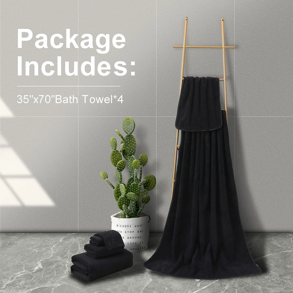 100% Microfiber Fabric: These towels won't warp or fray and ultimately maintain it's durability for a long period of time Feel the Difference on Your Skin: Dry up quickly after your rejuvenating shower or soothing bath. Lightweight & Ultra Soft: The extra Light weave (600gsm), super-strong threads and double-stitched hems Softer with Every Wash: Oversized Bath Towels Set will not fade even after hundreds of washing cycles GREAT VALUE SET: Our towel set includes 600 GSM 4 piece bath sheets set; 100% Microfiber; The Bath sheets measures ( 35 Inch X 70 Inch ). OVERSIZED DESIGN: Our Premium towels designed with ingenuity in mind, oversized microfiber bath towels are larger than other regular towels and dish out complete and total pampering by wrapping you and your loved ones in cozy ULTRA SOFT: bath towels are made from the highest quality materials and designed to be both elegant, functional & durable;The microfiber fabric provides a beautiful look while the softness will last for years to come - perfect if you're in need of a daily use towel set EASY CARE: Machine washable towel set; We recommend washing in cold water before your first use.Please tumble dry on low, do not use bleach, recommended drying immediately, hang it in a ventilated place to dry; There may be higher lint during the first few washes,once you complete the first few wash cycles, you will find that the lint is considerably reduced; To avoid staining and maintain the vitality of these shower towel sets, please avoid contact with harsh chemicals or cleansers MULTIFUNCTIONAL: Your bath sheets are not just for the bathroom! You can use them in pools, beaches, and saunas; Also perfect gift chioce: These towels are the perfect gift for housewarming, weddings, birthdays, anniversaries, Christmas, Thanksgiving and more