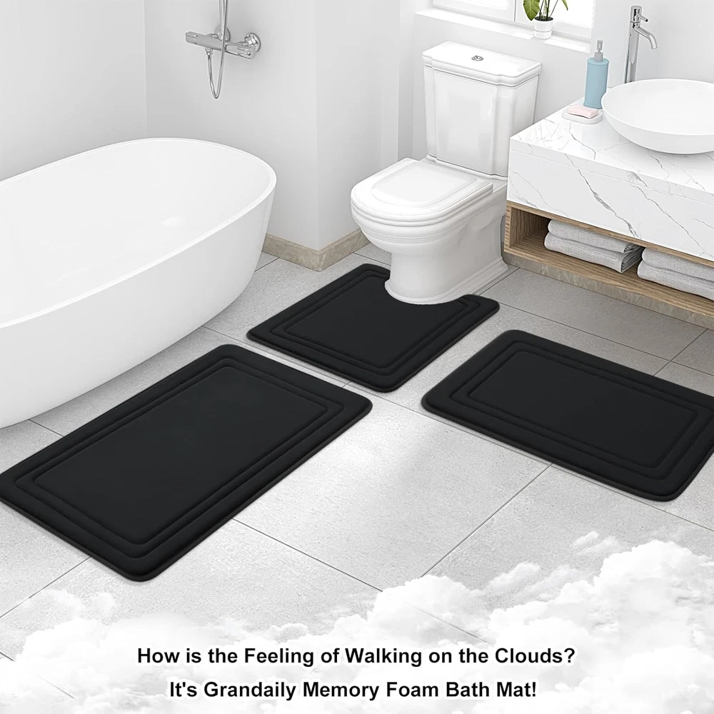 [CLOUD-LIKE COMFORT] Imagine stepping onto a Grandaily memory foam bath mat and feeling the heavenly softness of microfiber flannel velvet cradling your feet. The thick memory foam provides gentle support, making it feel like you're standing on clouds. [QUICK-DRY LUXURY] Grandaily's soft velvet microfiber bath rugs rapidly absorb water, offering a dry and slip-resistant surface when you step out of the bath, shower, or sink area. Experience the convenience of a fast-drying and dependable bathroom rug. [STABLE FOOTING] Our bathroom mat is equipped with a robust and enduring PVC backing, preventing shifting and skidding. Unlike mats with rubber backing that may wear off after washing, our bath mat ensures lasting durability. For a secure footing, keep the floor beneath the rug dry and avoid placing it on wet surfaces. [EASY CARE AND VIBRANT COLORS] Experience the perfect blend of convenience and aesthetics with our rugs. Designed for effortless maintenance, these bath rugs are machine washable, ensuring lasting cleanliness. The vibrant colors stay vivid even after numerous washes, adding a touch of brilliance to your living spaces. [CHIC COMFORT] Enhance your bathroom with Grandaily's bath rug – a chic and plush addition to your daily routine. Whether by the tub, shower, or sink, enjoy the soft luxury underfoot and elevate your bathing experience with timeless elegance. Product Description Grandaily Toilet Rug: Comfort & Style, Brightening Your Bathroom! Add to Cart Add to Cart Add to Cart Add to Cart Add to Cart Add to Cart Customer Reviews 4.4 out of 5 stars 161 4.5 out of 5 stars 10,987 4.4 out of 5 stars 303 4.4 out of 5 stars 161 4.4 out of 5 stars 161 4.4 out of 5 stars 161 4.4 out of 5 stars 161 Price $11.99 $ 11 . 99 $9.99 $ 9 . 99 — $18.99 $ 18 . 99 $18.99 $ 18 . 99 $18.99 $ 18 . 99 $18.99 $ 18 . 99 Material Memory Foam Chenille Chenille Memory Foam Memory Foam Memory Foam Memory Foam Size 24" x 20" 30" x 20" 24" x 20" 24" x 20" 24" x 20" 24" x 20" 24" x 20" Backing Technology ✔ ✔ ✔ ✔ ✔ ✔ ✔ Ultra Absorbent ✔ ✔ ✔ ✔ ✔ ✔ ✔ More Colors ✔ ✔ ✔ ✔ ✔ ✔ ✔
