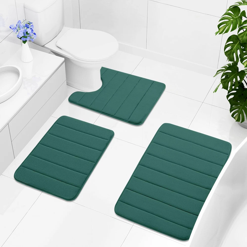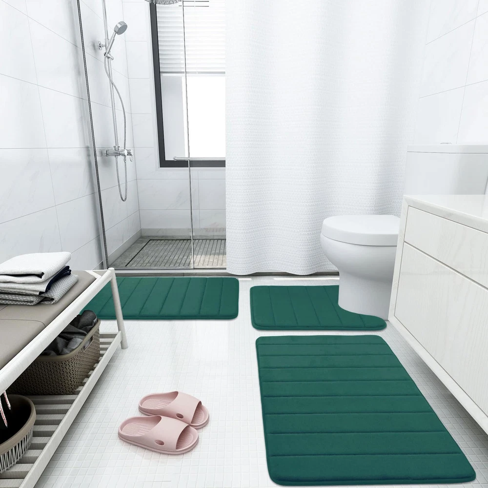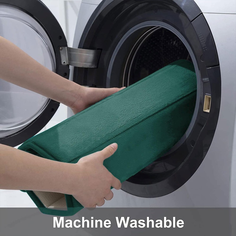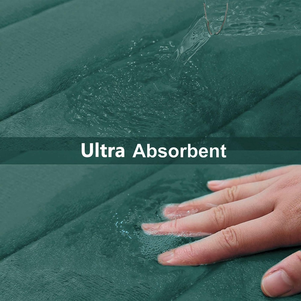 SOFT & COMFORTABLE: Bath mats are filled with polyurethane memory foam and the microfiber velvet outer material, soft and cozy, skin-friendly, relieve pressure and fatigue on your feet NON-SLIP PVC BACKING: Bathroom mats feature a non-slip mesh back to prevent the mat from shifting and skidding, and the rubber back prevents water from seeping to the soft surface. WARNING: Place mat on CLEAN DRY SMOOTH FLOOR only. Water under bath mats can cause it to slip. Keep bottom of mat dry. Before using bath carpet, test with foot to ensure it doesn't move WATER-ABSORBENT: Bath rugs are treated with memory foam to absorb water and dry quickly, keeping your bathroom away from water, and keep clean every day EASY CLEANING: Machine wash in cold water. Do not use chlorine or bleach. Tumble dry on low heat or lay to air dry, the color will not fade with continual uses. Please measure the size before purchasing these mats Remove the Crease: Our bath mat is packaged using our innovative rolled packaging method. To effectively remove the creases, please follow these steps: 1. Place a damp towel over the folded sections of the bath mat; 2. Gently press and move the iron across the mat periodically. This process should significantly reduce the creases, Once the creases are minimized, the bath mat can be placed anywhere in the bathroom