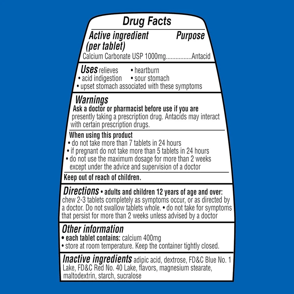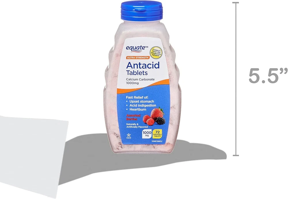 Ultra Strength Antacid Assorted Berries Chewable Tablets, 1000 mg, 72 Count, Pack of 2