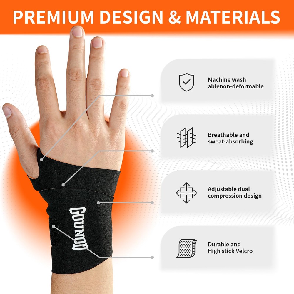 Effectively Relieve Pain: Wrist wrap prevents issues like computer typing injuries, sports injuries. Simultaneously, it effectively relieves pain from conditions such as arthritis, tendonitis, TFCC,Carpal Tunnel Syndrome, ganglion cyst, CMC, and other conditions. This wrist brace holds your hands and wrists in the correct position, providing just enough restriction to prevent wrist injuries High Quality Fabric: wrist wraps is made from a high-quality blend of 75% nylon/25% spandex, which easily withstands washing without stretching or losing its shape. The wrist support has a streamlined design, it is comfortable and fits well, lightweight and breathable, keeping you dry and sweat-free all day long. You won't even feel its existence, but rather enjoy the support it brings to you Comprehensive Wrist Stabilization: Our wrist wrap features dual compression and a wrap-around design, effectively covering the wrist joint area. It comprehensively supports tendons, ligaments, and muscles. Hook and loop fasteners ensure targeted pressure application at both the top and bottom of the wrist, providing quick and effective stabilization Customizable Compression: Our wrist wrap conforms to an ergonomic design, is universal and adjustable, allowing you to tailor the compression level to your liking without having to worry about size. It protects and stabilizes your wrists with gentle compression during and after workouts and training, which allows for comfortable wear and fits well, while ensuring your wrists are well-protected Meet Various Occasions: Wrist support is essential for activities such as yoga,basketball, tennis, golf, and cycling,It also applies to those who spend long hours on computer editing, driving. Whether you're working out or going about your daily work, wear a wrist compression sleeve for pain and instability caused by injuries and overuse injuries