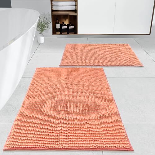 Ultra-Absorbent Coral Chenille Bathroom Rug Set – Non-Slip 31x20 & 24x16 Inches