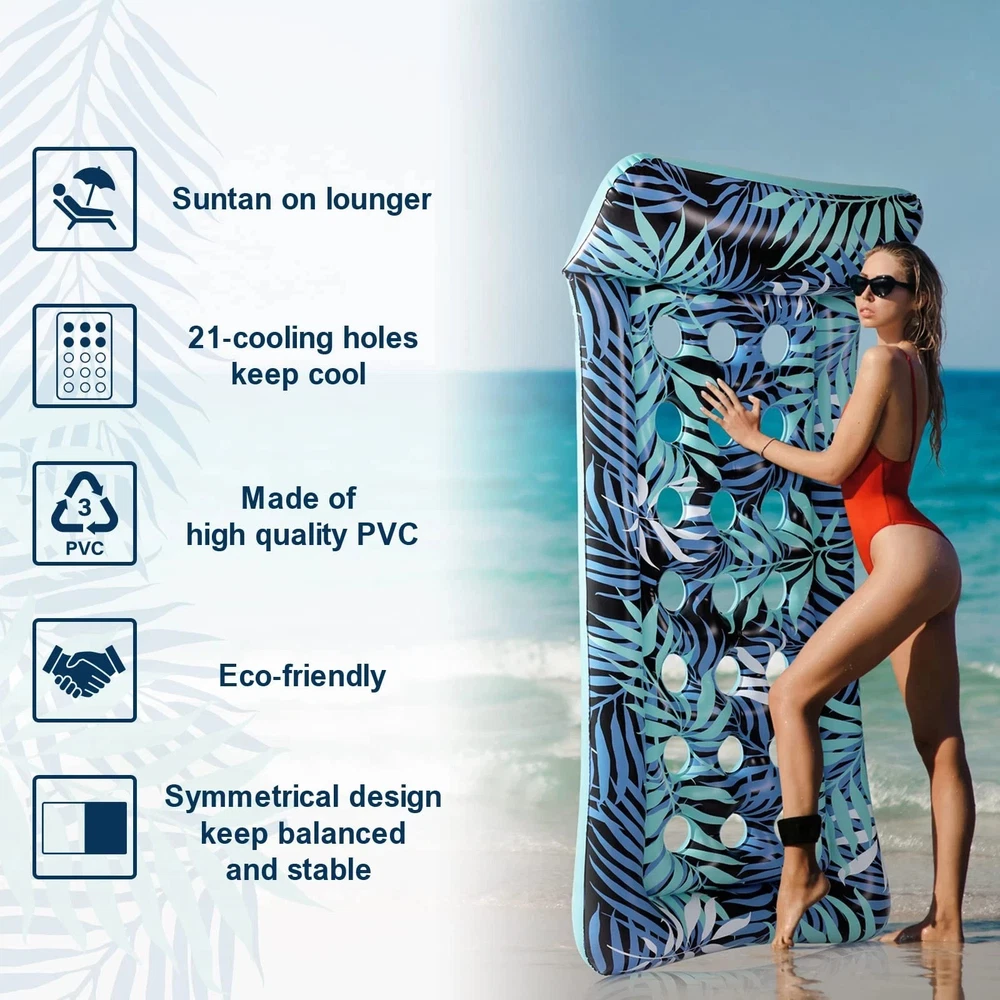 2025 XL Inflatable Tanning Pool Lounger Float 85 x 57 Inches for Summer