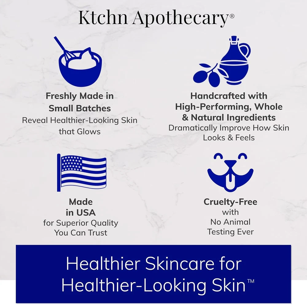 ULTRA-HYDRATING NATURAL LIP BALM & LIP CONDITIONER IN ONE: Our handcrafted Lip Treatment is an Ultra-Hydrating Lip Balm & Lip Conditioner in One. Freshly made with natural & food-quality ingredients, this nourishing, moisturizing formula visibly hydrates & soften lips. MOISTURIZE & NOURISH DRY LIPS: Our handcrafted formula is rich in omega fatty acids, known for their powerful ability to intensely moisturize & deeply nourish chapped, dry lips. GOES ON SILKY SMOOTH — NEVER WAXY OR STICKY: Freshly made with moisture-replenishing African Shea Butter, our lip balm has a smooth, silky texture with a clear satin finish. Never waxy or sticky. SOFTEN & PROTECT LIPS: Formulated with antioxidant-rich virgin Avocado Oil & lauric acid-rich Coconut Oil, our Lip Treatment supremely protects lips from dryness, softening & smoothing rough lips with all-day & night hydration. HANDCRAFTED WITH NOURISHING, 100% NATURAL INGREDIENTS: Our exclusive formula is freshly made with Nourishing, Natural Ingredients. Housed in our signature, recyclable Brushed Aluminum case with Twist-to-Lock lid to seal in freshness & protect when not in use. Perfect for Women + Men. Product Description Handcrafted & Freshly Made Ktchn Apothecary 100% Natural Hydrating Lip Treatment Our handcrafted Lip Treatment is an ultra-hydrating lip balm & lip conditioner in one. Freshly made with natural, nourishing ingredients, this moisturizing formula rejuvenates, smoothes, & softens for visibly healthier, hydrated lips. All Skin Types. Men & Women. HYDRATE & SOFTEN ULTRA-HYDRATING LIP BALM & CONDITIONER-IN-ONE Handcrafted with nourishing ingredients, this moisturizing formula dramatically hydrates & softens. NOURISHING & 100% NATURAL NOURISH & MOISTURIZE DRY LIPS. NATURALLY. This hydrating 100% Natural formula intensely moisturizes & deeply nourishes chapped or dry lips ALL DAY & NIGHT HYDRATION SOFTEN & PROTECT LIPS Supremely protect lips from dryness, softening & protecting with all-day & night hydration NEVER WAXY OR STICKY SILKY SMOOTH TEXTURE Freshly made in small batches for a silky, smooth texture. Never waxy or sticky BYE BYE PLASTIC TUBES PREMIUM BRUSHED ALUMINUM METAL CASE Say goodbye to Plastic Lip Balm Tubes. Our brushed Aluminum Metal Case looks & feels beautiful 1 2-IN-1 LIP TREATMENT 2 NOURISH & MOISTURIZE 3 SOFTEN & PROTECT LIPS 4 SILKY SMOOTH TEXTURE 5 PREMIUM ALUMINUM CASE AVOCADO OIL This nourishing oil is rich with of vital antioxidants known to dramatically smooth & soften lips . AFRICAN SHEA BUTTER Rich in essential fatty acids known to intensely moisturize & nourish parched lips . HONEYCOMB BEESWAX Rich with pure esters, Honeycomb Beeswax is known to protect lip's natural moisture barrier. VIRGIN COCONUT OIL This nourishing ingredient is known to dramatically soften & smooth, rejuvenating dry lips . HIGH-PERFORMING, NOURISHING & ANTIOXIDANT-RICH INGREDIENTS 1 AVOCADO OIL 2 AFRICAN SHEA BUTTER 3 HONEYCOMB BEESWAX 4 VIRGIN COCONUT OIL WHAT CUSTOMERS ARE SAYING Ktchn Apothecary. Healthier Skincare for Healthier-Looking Skin. Handcrafted in Small Batches with the Batch Number right on the Bottle for Freshness You Can See Clean & Natural Ingredients Nourishing, High-Performing Ingredients Dramatically Improve How Skin Looks & Feels Made in the USA for Superior Quality You Can Trust Cruelty-Free No Animal Testing Ever. Naturally Facial Care: Handcrafted & Freshly Made in Small Batches Add to Cart Add to Cart Add to Cart Customer Reviews 4.5 out of 5 stars 92 4.6 out of 5 stars 2,012 4.3 out of 5 stars 27 4.6 out of 5 stars 65 4.6 out of 5 stars 238 5.0 out of 5 stars 2 Price $129.99 $ 129 . 99 $19.99 $ 19 . 99 — — $42.99 $ 42 . 99 — Freshly Made Treatment Save $30+ by ordering as a Set Facial Cleanser Face Oil Hyaluronic Acid Serum Facial Moisturizer Eye Serum All Skin Types ✔ ✔ ✔ ✔ ✔ ✔ For Women & Men ✔ ✔ ✔ ✔ ✔ ✔ Nourishing, Natural Formula ✔ ✔ ✔ ✔ ✔ ✔ Freshly Made in Small Batches ✔ ✔ ✔ ✔ ✔ ✔ Size 4 Full Size Bottles 4.0 fl oz 1.0 fl oz 2.0 fl oz 2.0 fl oz 0.5 fl oz Body & Hair Care: Handcrafted & Freshly Made in Small Batches Add to Cart Add to Cart Customer Reviews 4.4 out of 5 stars 255 4.4 out of 5 stars 51 4.2 out of 5 stars 20 4.2 out of 5 stars 82 Price $19.99 $ 19 . 99 — $24.99 $ 24 . 99 — Freshly Made Treatment Lip Treatment NEW — Body Cleanser NEW — Shampoo Body Lotion All Skin & Hair Types ✔ ✔ ✔ ✔ For Women & Men ✔ ✔ ✔ ✔ Nourishing, Natural Formula ✔ ✔ ✔ ✔ Freshly Made in Small Batches ✔ ✔ ✔ ✔ Size 0.15 oz 16.0 fl oz 12.0 fl oz 16.0 fl oz