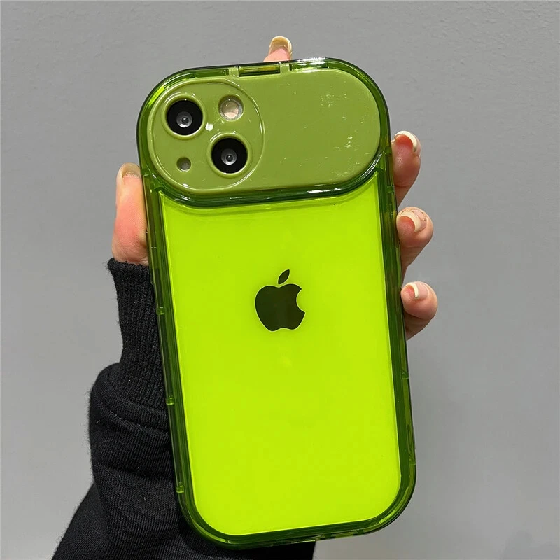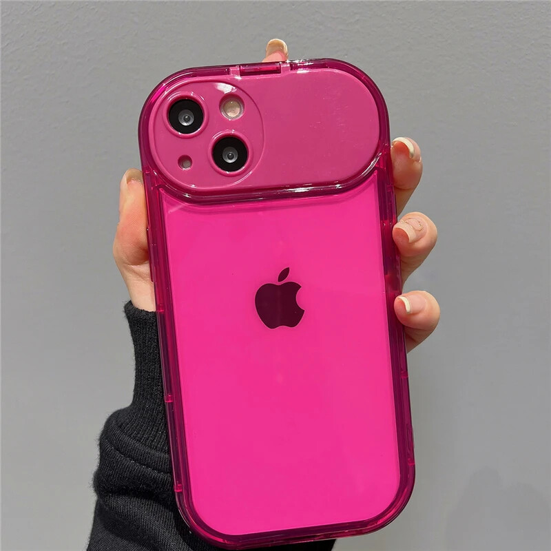 Invisible Fold Mirror Stand Holder Transparent Phone Case For iPhone 15 Pro Max 14 13 11 12 Pro XS Candy Color Protection Cover