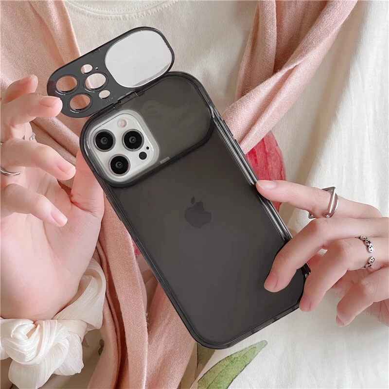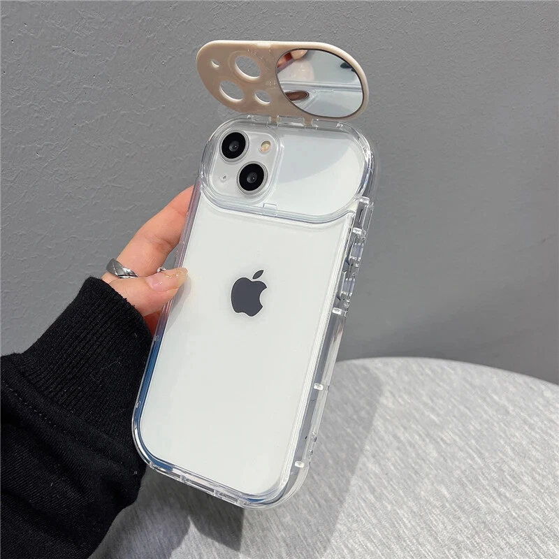 Ultra-Thin Fold Mirror Bracket Clear Case for iPhone 15 Pro Max 14 13 12 11