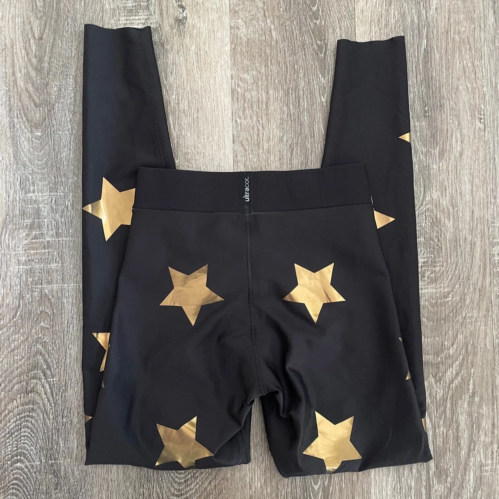 Ultracor Lux Essentials Star Knockout Ultra High Legging in Nero/Gunmetal Black Gold Excellent used condition No visible stains or worn spots There's a loose thread along the crotch area - see as pictured. Size: XS Color: Nero/Gunmetal *Color may differ in photos due to lighting. Bonded star detail Second-skin like fit & fabric Built-in shapewear High stretch compression performance fabric Nylon/Lycra Machine wash cold. Measurements (laid flat across): Rise: 9" Inseam: 25" Waist (across): 11.25" Total Length: 34"