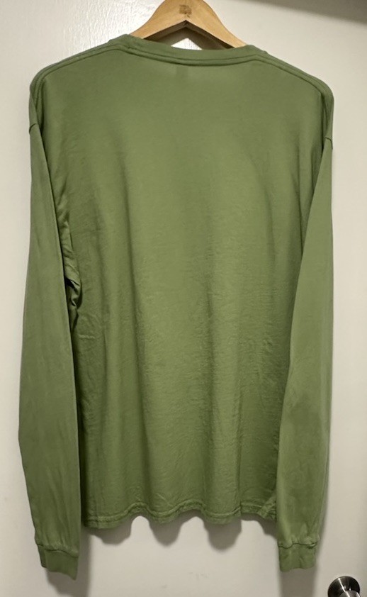 The Royal Apparel Kaiju Monster Men's Size XL Green Tatsuji Kalita Sleeve Shirt is a graphic print long sleeve shirt featuring a creature design. Made from cotton knit fabric, this shirt is machine washable and has a regular fit. The shirt is themed around nature, colorful designs, Japanese culture, 60s illustrations , and retro aesthetics. Perfect for any season, this shirt from the Dark Horse character family is a unique addition to any man's wardrobe, showcasing the brand's commitment to quality and style. This Long Sleeve Tee is in excellent condition with minimal wear. No Holes or Stains. See All Photos. Tape Measurements: Armpit to Armpit: 22” (Chest: 44”) Shoulder to Shoulder: 20” Shoulder to Bottom Hem: 28” Sleeve Length (from center back collar to end of sleeve): 39”