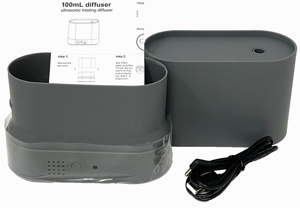 Project 62 Ultrasonic Narrow Form Essential Oil Diffuser 3.39 fl oz - 4.96" x 2.81" x 5.88"D. Includes USB to DC Cable. 100ml Essential oil diffuser for your living spaces Neutral design mixes easily with your existing decor 5 hour run time for long-lasting enjoyment AC adapter powered for versatile use and placement Continuous and intermittent mist modes with auto shutoff Condition is New - Free Standard Shipping.