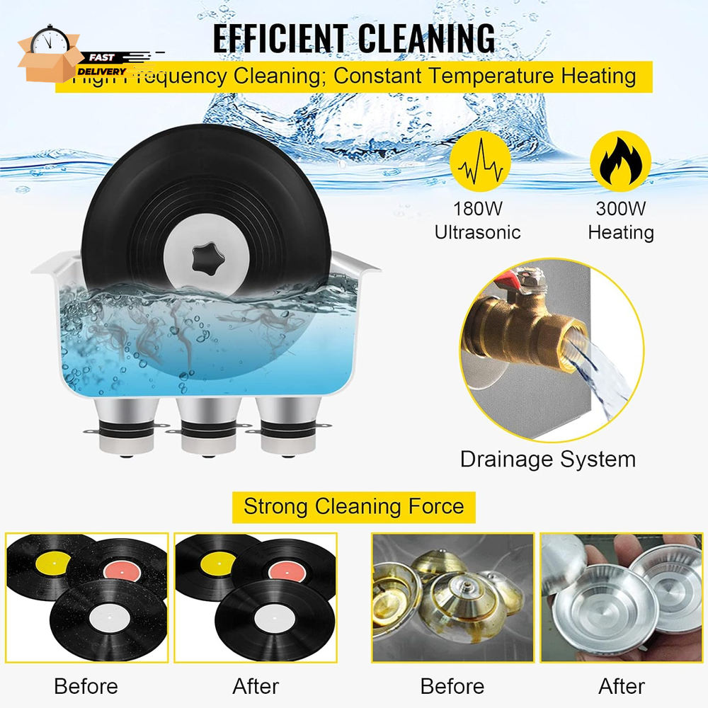 This ultrasonic vinyl cleaner is a game-changer! The 6L stainless steel tank is sturdy and leak-proof, while the 40kHz deep cleaning removes every speck of dust without damaging records. The heated cleaning and included basket make the process effortless—my vinyl has never sounded this crisp. Perfect for serious collectors!