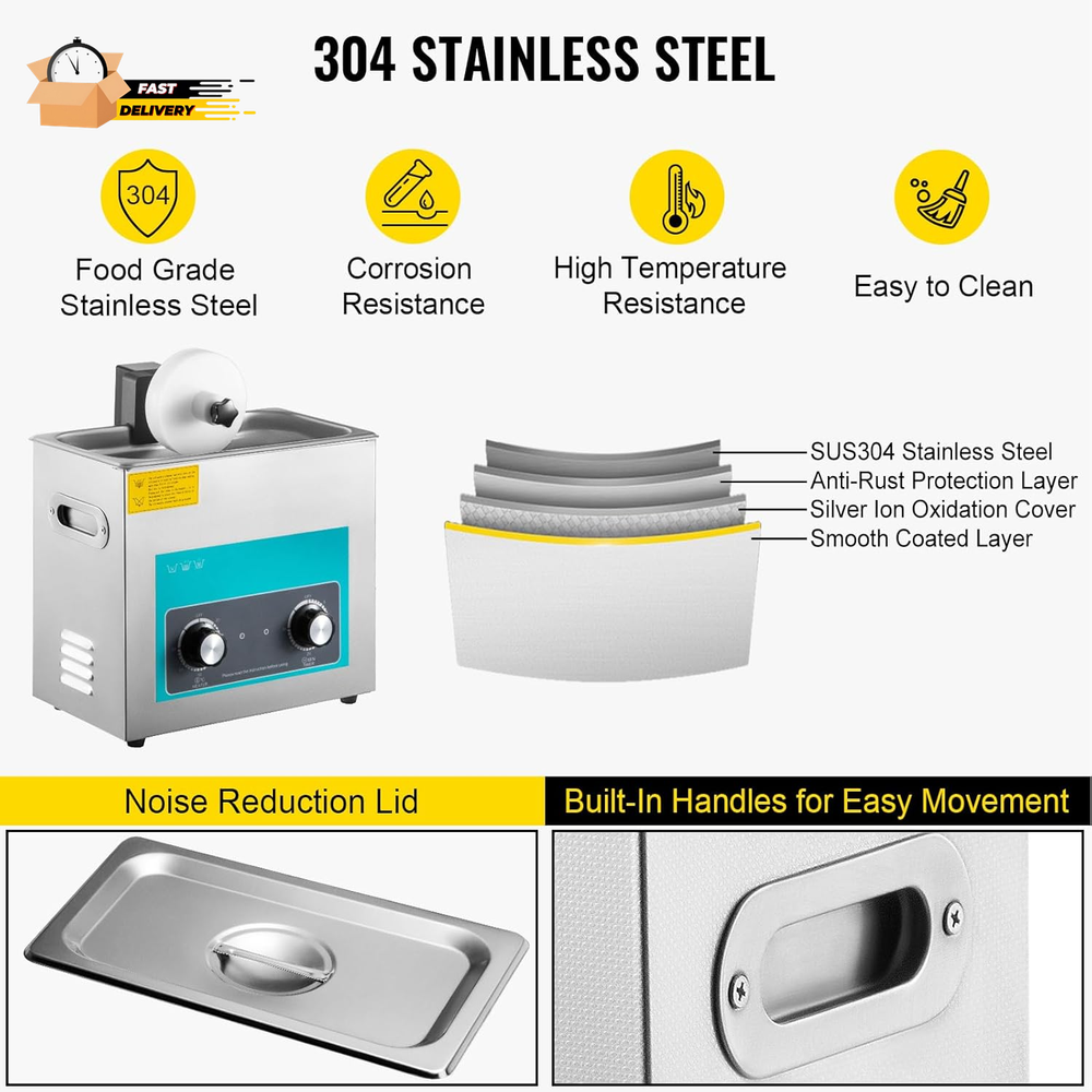 Store New Arrivals Add to Favorite View Feedback Contact Ultrasonic Vinyl Record Cleaner 6L 40Khz Vinyl Ultrasonic Cleaning Machin Description Product Dimensions 16.5 x 14.2 x 11.2 inches; 13 Pounds Size 6L-Record Cleaner Premium SUS304 Material: Tank Size: 6L/1.59 Gal; Ultrasonic Power: 180W; Heating Power: 300W. This ultrasonic cleaner is constructed with sturdy 304 stainless steel, ensuring no water leakage and long service life. A ball-shaped basket is available to decrease collision between sharp items and the tank. 40khz Deep Cleaning: 40kHz ultrasonic frequency allows the ultrasonic jewelry cleaner to quickly clean small items with complex construction or irregular shape. The industrial-grade transducers create millions of microscopic bubbles that powerfully clean your possessions while saving time and energy. Mechanical Knob Control: The jewelry cleaner ultrasonic machine features two mechanical knobs to adjust functions, with an adjustable timer (0-30 min) and heater (68-176℉/20-80℃). A heating function can effectively soften and dissolve stubborn marks, thereby improving the cleaning effect. High-Capacity Rack: This commercial ultrasonic cleaner is designed with a washing rack for vinyl records, made of 6062 aluminum, which can clean 4 vinyl records at a time. The vinyl records are driven by a built-in motor at 720 degrees/min and cleaned by ultrasonic vibration. Extensive Application: Our heated ultrasonic cleaner is ideal for commercial, industrial, and residential use. The ultrasonic cleaning machine is suitable for record stores, dental clinics, hardware stores, scientific laboratories, jewelers, optical shops, watchmakers, antique dealers, etc. Product description Key Features Premium Stainless Steel 304 stainless steel tank, better to resist alkali solution, organic/inorganuc acid than normal SUS200 products. 201 stainless steel cover, made up of several crafts to ensure no water leakage, heat-proof & anti-rust. Powerful 40KHz Frequency Industrial-level transducer, create more cavitation quantity than 28KHz products. Do well in cleaning stuffs with complex shape, holes, long-time stians. Also, it will cause much lower nouse than ultrasonic waves nearly 20KHz. Large 10L Tank Tank Capacity: 10L; Adjustable Heat & Work Time Actual 240W cleaning work time(0-30 minutes adjustable); Also can heat the liquid between 20-80℃(adjustable). Micro-chip controlled machine, with 2 mechanical knobs to adjust functions.Get brand new valuables after it finished. Elaborate & Convenient Details Input: 110V; Handles at both side for easier movement. And the top lid is to prevent heat loss and reduce noise. Right side water drain connector with valve to control water outlet speed. 4 bottom rubber feet to keep stability. Versatile Cleaning Field Professional 10L ultrasonic washer, suitable for many fields to use--Medical and Dental Clinics, Tattoo Shops, Scientific Labs and Golf Clubs.Jewelers, Opticians, Watchmakers, Antiques Dealers and Electronics Workshops, etc. Specifications Input: 110V Material: Stainless Steel Ultrasonic Frequency: 40KHZ Tank Capacity: 10L Working Time: 0-30 Minutes Cleaning Power: 240W Heating Function: 400W(Power); 20-80℃ Heating Temperature Tank Size (L*W*H): 11.8" x 9.4" x 5.9"/30 x 24 x 15 cm Product Size (L*W*H): 12.8" x 10.4" x 11"/32.5 x 26.5 x 28 cm Product Weight: 17.3 lbs/7.85 kg Package Content 1 x Sonic Cleaner 1 x Jewelry Cleaning Ball 1 x Water Pipe 1 x Stainless Steel Cover 1 x Power Supply 1 x User Manual 10L Sonic Cleaner with Heater This is a high efficiency sonic cleaner used for daily or professional cleaning works. It will emit 40KHZ ultrasonic wave to deeply wash dirt on your valuable's surface, longhole, crevice and shelter. With heating & timing function, use only tape water, if needed, some solutions, your things can be cleaned thoroughly in minutes. No scratching created, great for business, commercial or home. Note: Since our sonic cleaner has been upgraded & updated, the product (in metal or plastic handle) will be delivered randomly. Premium Material Ensured Heating & Working Adjustment Amazing Cleaning Function User-Friendly Design ABOUT US We offer the best prices around on high quality products. Our E-store includes media such as books, movies, music and games while offering electronics, toys, sporting apparel, clothing, tools, general home, garden items and more. SHIPPING We are always working hard to ensure your package arrives as soon as possible. Please understand that some factors like weather, high postal traffic, and the performance of shipping companies are outside of our control. We offer free shipping to the lower 48 states and ship within 2 business days of payment, usually sooner. We do not accept P.O. Boxes. Please provide a physical address. For shipping outside of the continental USA, we only use eBay's Global Shipping Program.The item is shipped to KY and then sent to the rest of the world. International customers are responsible for all duties and taxes. Continue to check out in order to calculate costs for shipping the item to your country. Messages regarding eBay's Global Shipping Program MUST be directed at eBay EXCLUSIVELY. RETURNS We offer a 30-Day Return Policy on items which you are not completely satisfied with. You have the option for a full-refund or an exchange of the item. No returns are available on items shipped outside of the USA. PAYMENT We accept PayPal. CONTACT US This page content is yet to come Please ad us to your favorite seller and visit again later Thank You CUSTOMER SATISFACTION We try our very best to make sure every customer is completely satisfied. If there's a problem, message us! We're happy to help. WE ACCEPT Copyright © 2021 AutoDS. | All Rights Reserved
