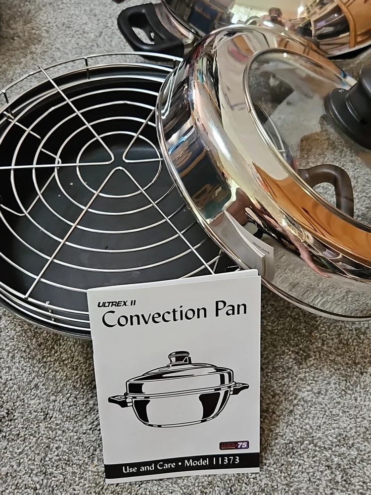 This Ultrex II Innova stainless steel pan is the perfect addition to your kitchen. With convection cooking technology, you can cook your food evenly and thoroughly. The pan measures 15 inches in height and is compatible with all stove types. The skillet/griddle is perfect for cooking up a variety of dishes, and the included asparagus pot, steamer, and tempered glass lid make this set a versatile choice. The sleek silver color and durable stainless steel material make this pan a stylish and long-lasting addition to your cookware collection.