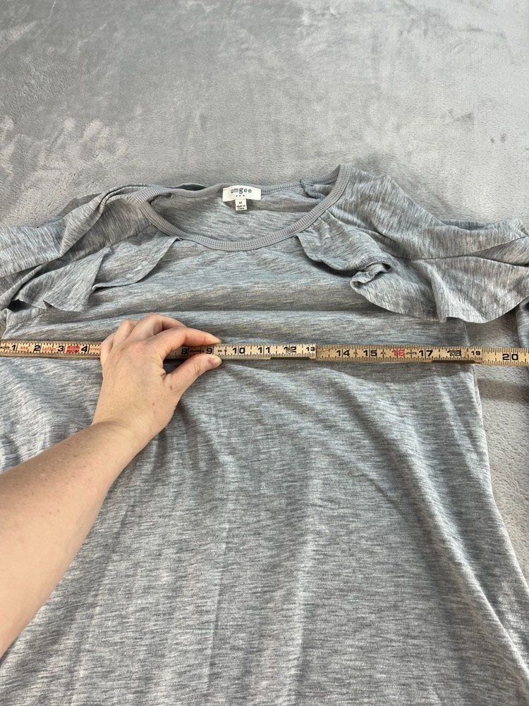 The Umgee Tunic Top is a stylish and versatile addition to any woman's wardrobe. This casual pullover top features a round neck, long sleeves, and a ruffled sleeve detail for added flair. Made from a comfortable blend of polyester and cotton, this gray top is perfect for everyday wear and can be easily machine washed for convenience. With a regular fit and pockets for added functionality, this tunic top from UMGEE is suitable for all seasons and occasions.