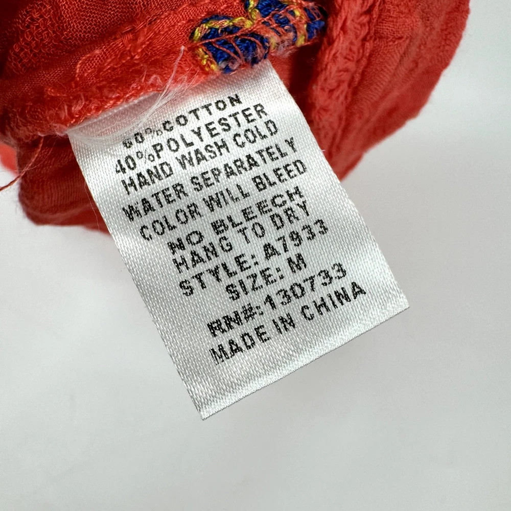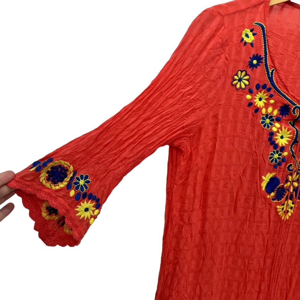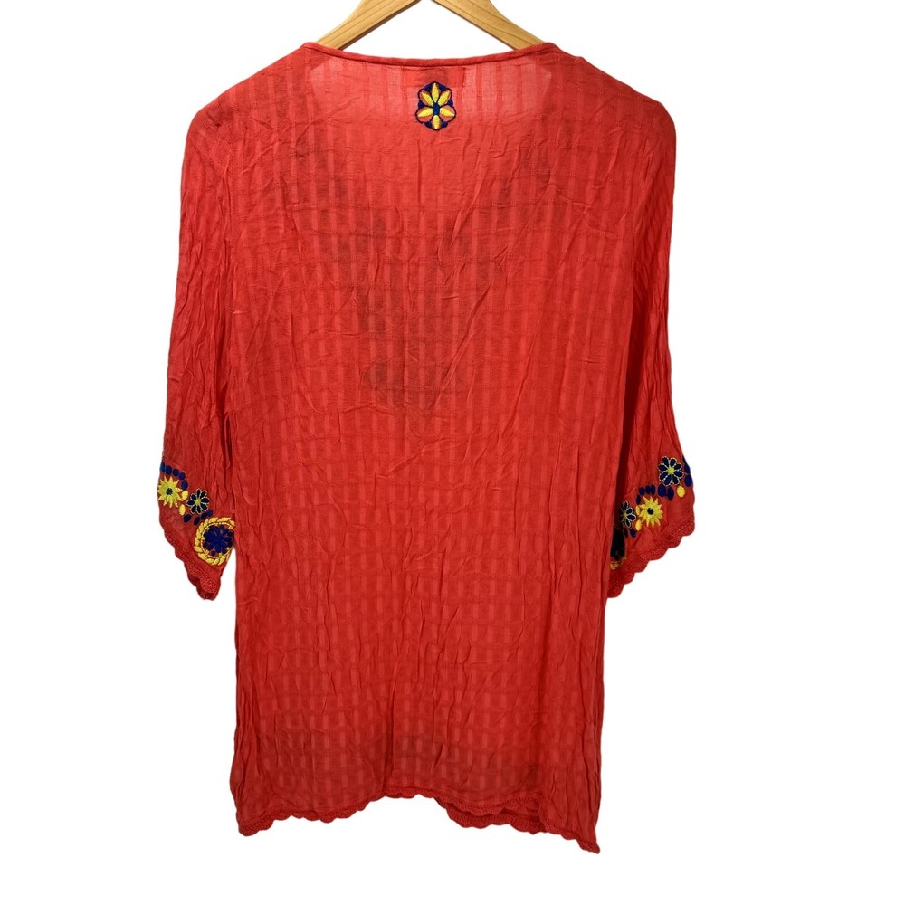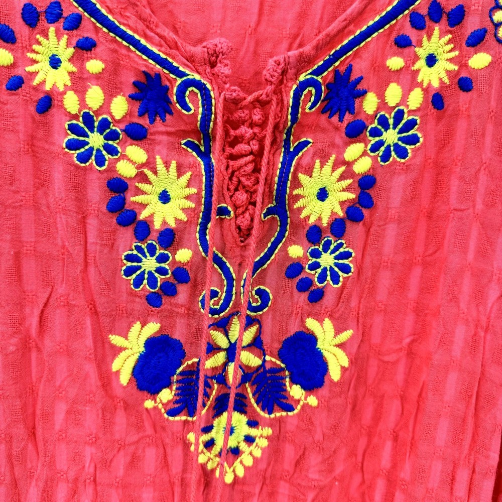 HomeUmgee Tunic Top Womens Medium Pink Embroidered Boho Floral 3/4 Sleeve Pullover