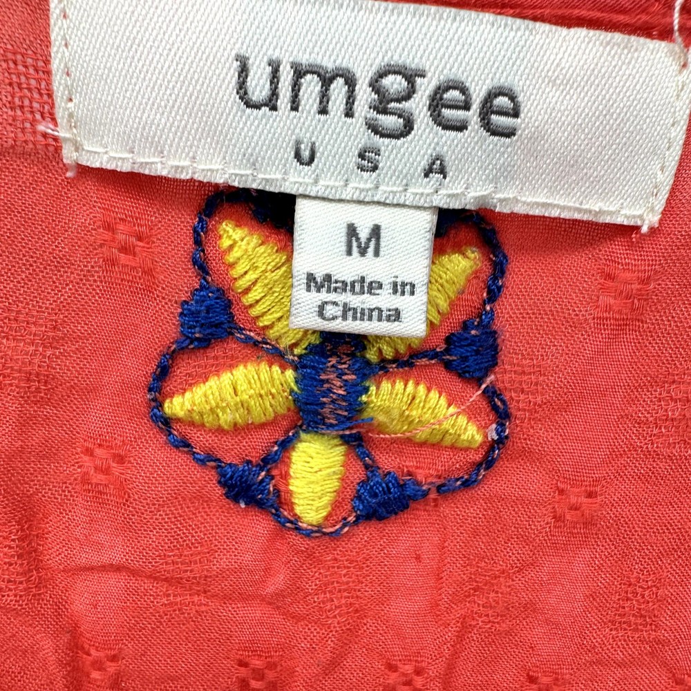 Umgee Tunic Top Womens Medium Pink Embroidered Boho Floral 3/4 Sleeve Pullover